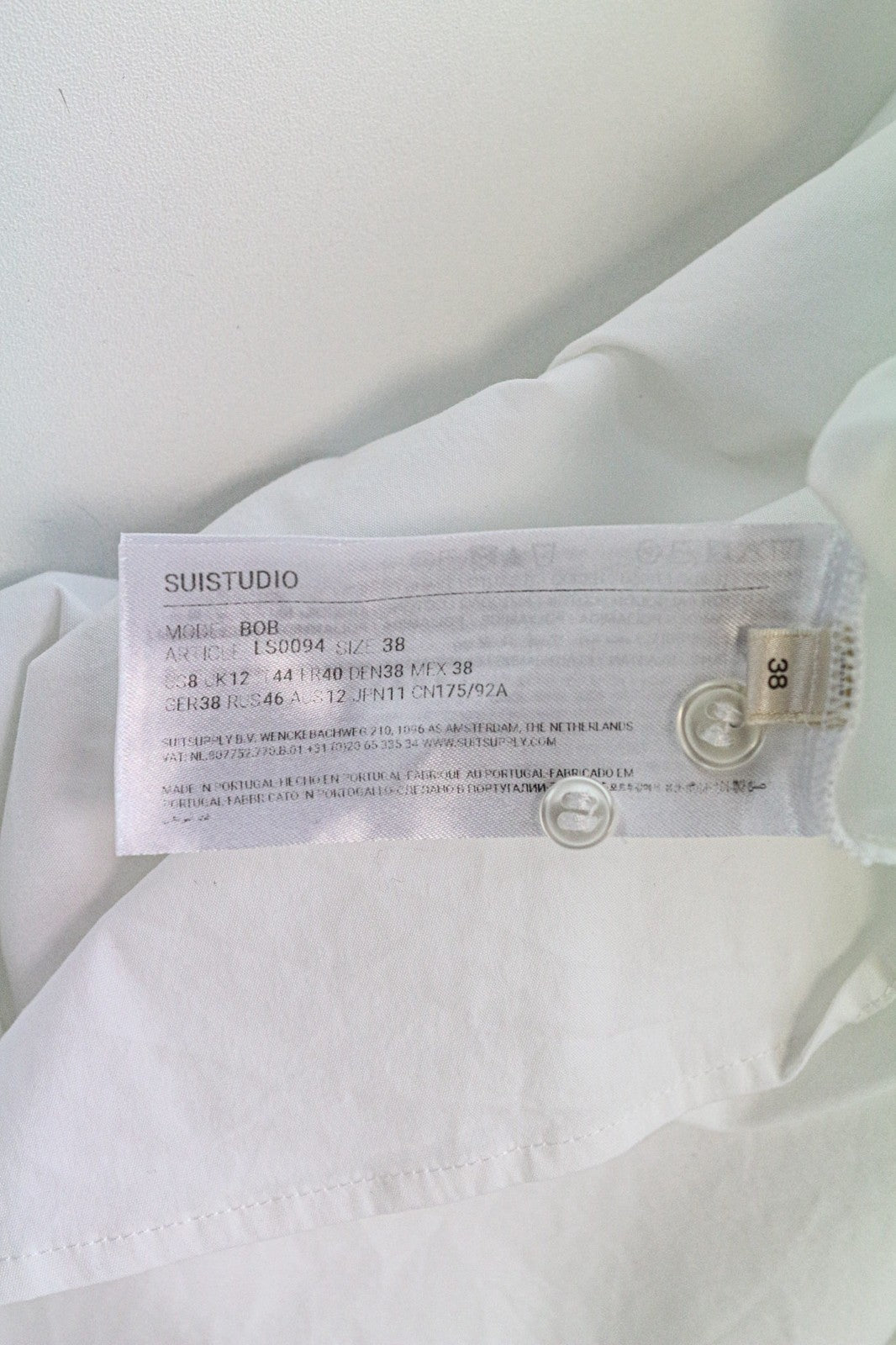SUISTUDIO Bob moteriški marškinėliai, UK12, balti, ploni, atvirais pečiais, tamprios medvilnės palaidinės su valties formos iškirpte.