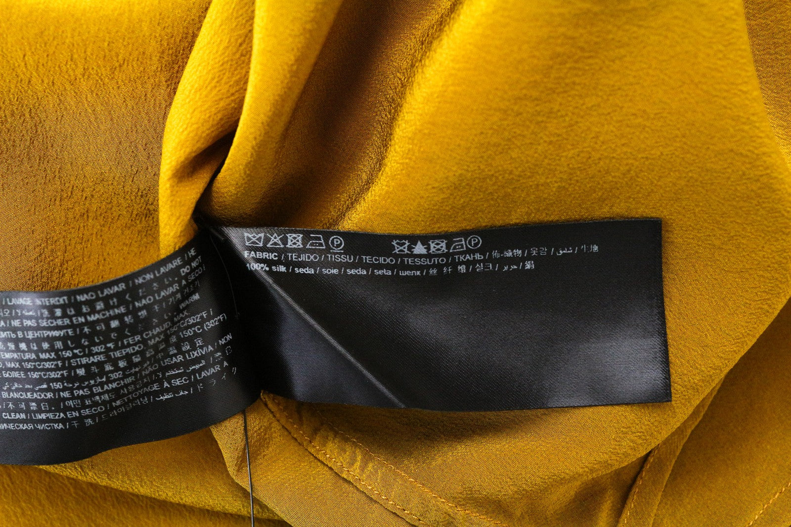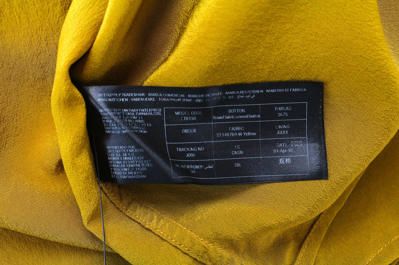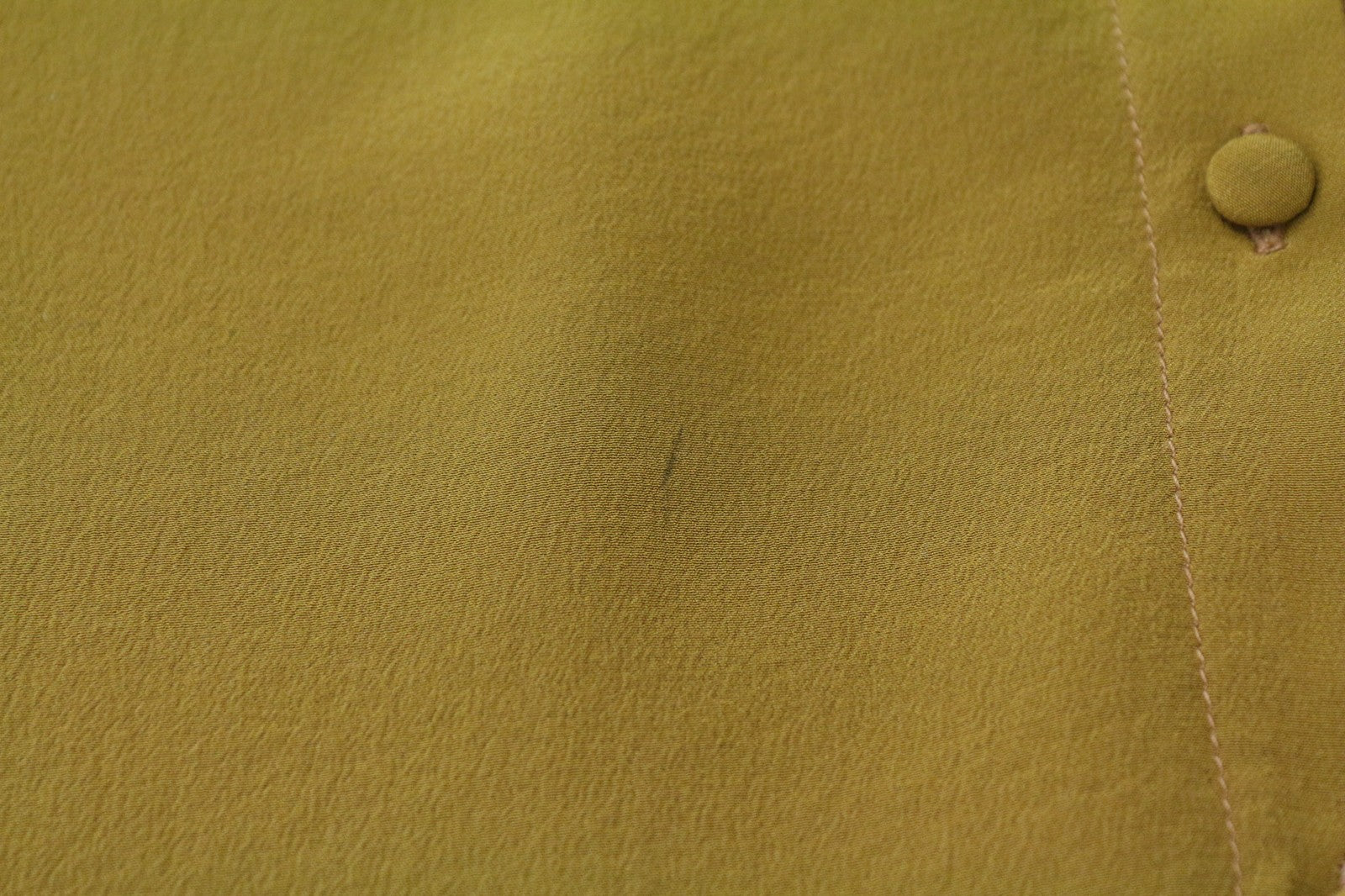 SUISTUDIO Bridgette moteriška palaidinė UK8 geltona garstyčių spalvos plona šilkine palaidinė su sagomis
