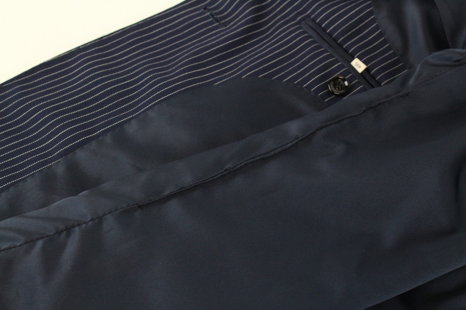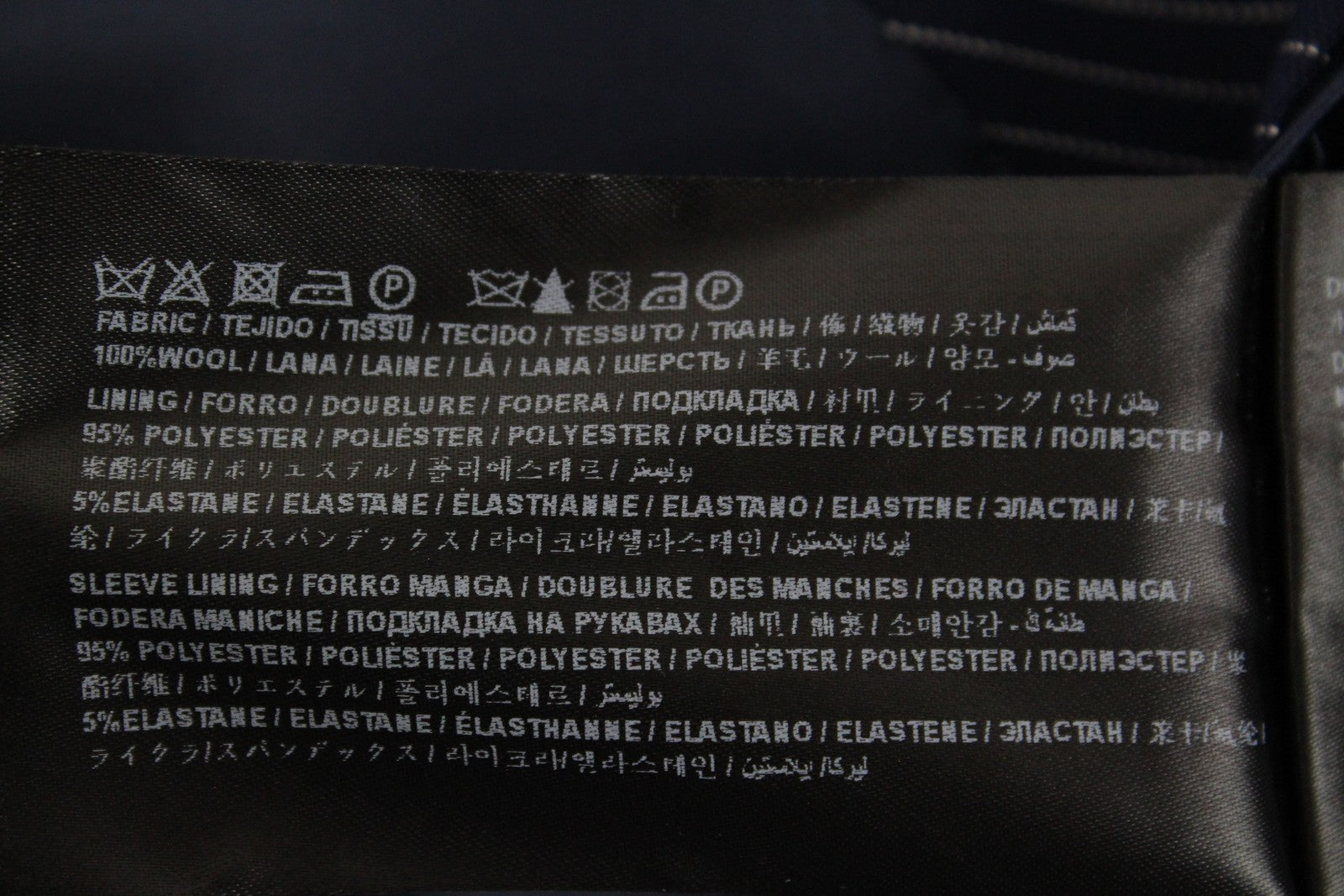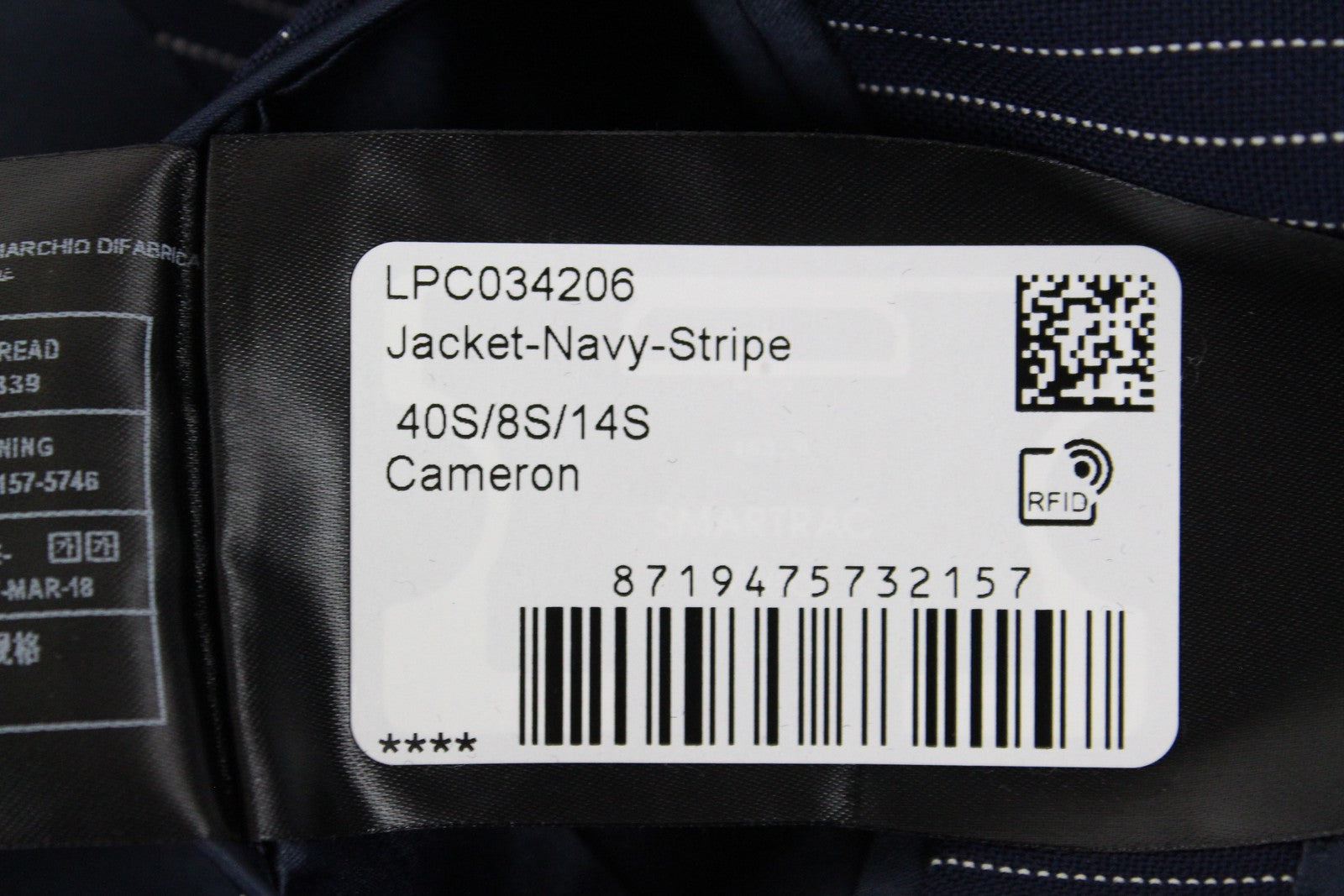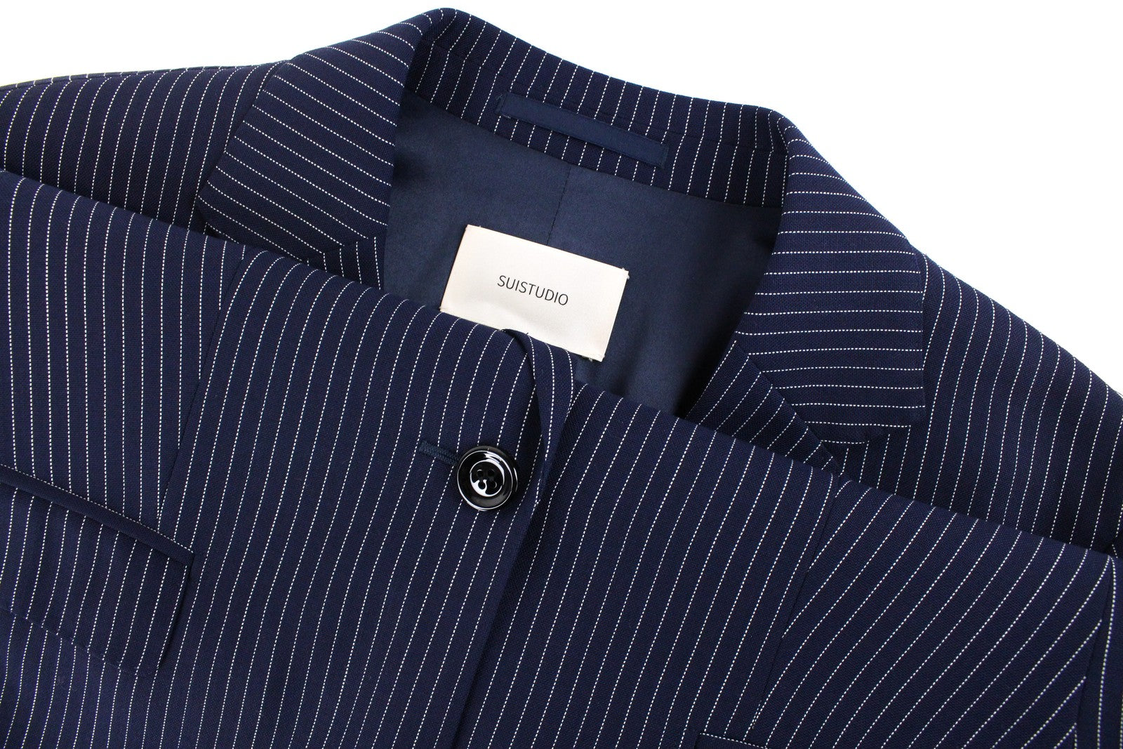 SUISTUDIO Cameron moteriškas švarkas UK14S mėlynai dryžuotas vilnonis vieneilis švarkas