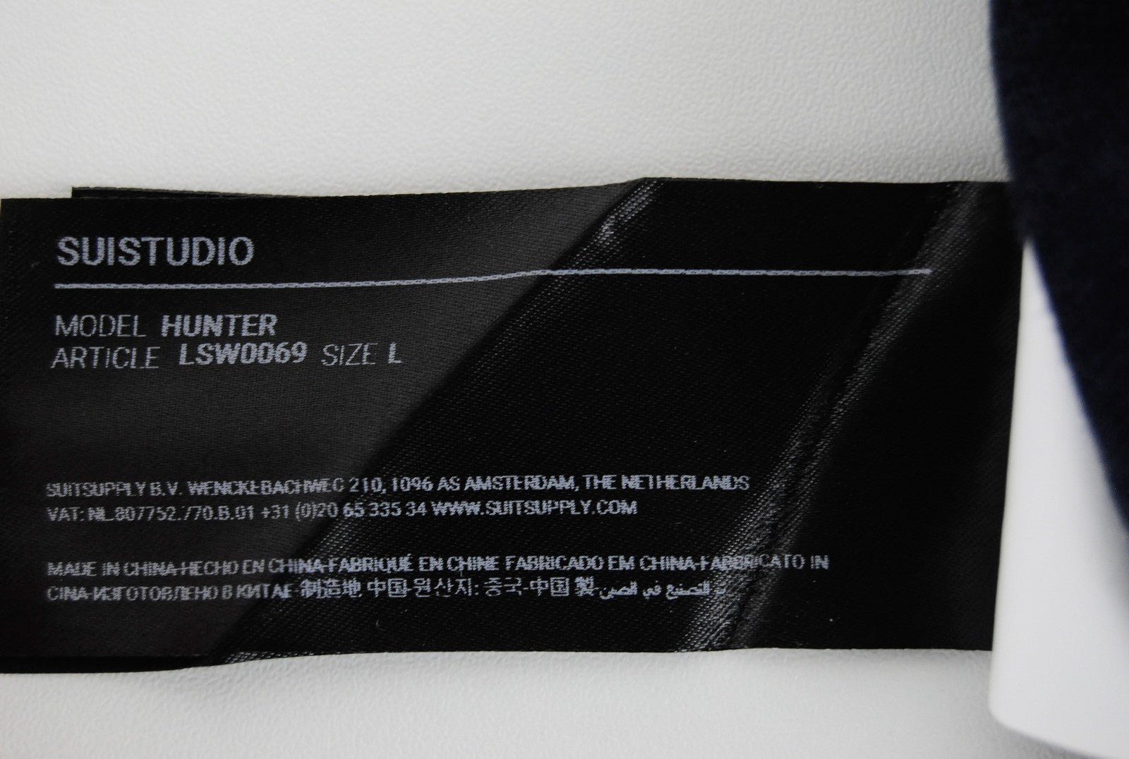SUISTUDIO Hunter moteriškas džemperis L dydžio, tamsiai mėlynas, vilnonis, ilgomis rankovėmis, gobtuvo formos kaklo papuošalas