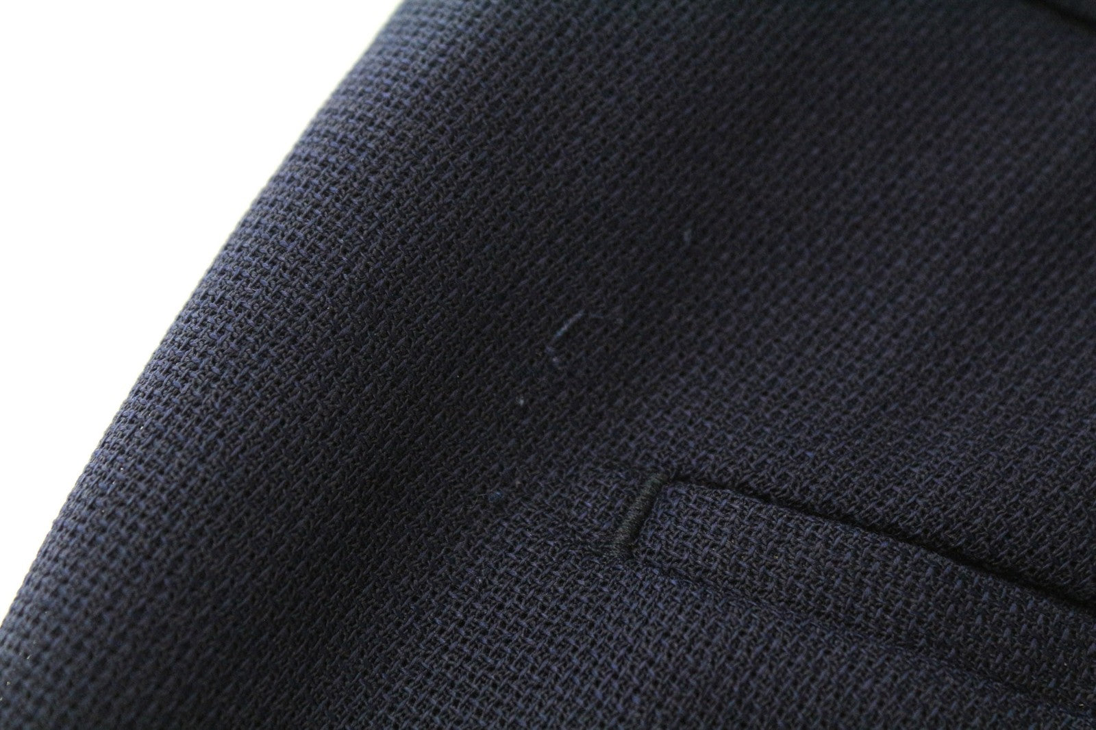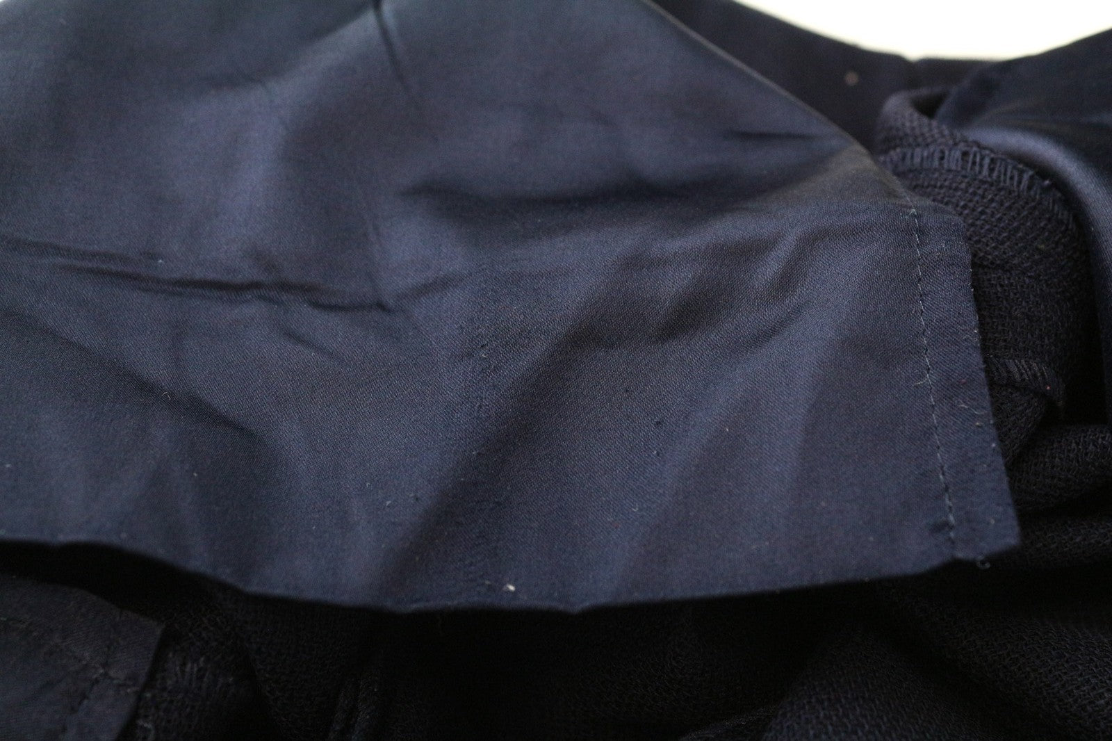 Sutaisyta juosmens linija, ištraukti siūlai ant dešinės kojos priekyje ir kairės kojos gale. Dėmė ant kairės kojos. Žiūrėkite pridėtas nuotraukas.