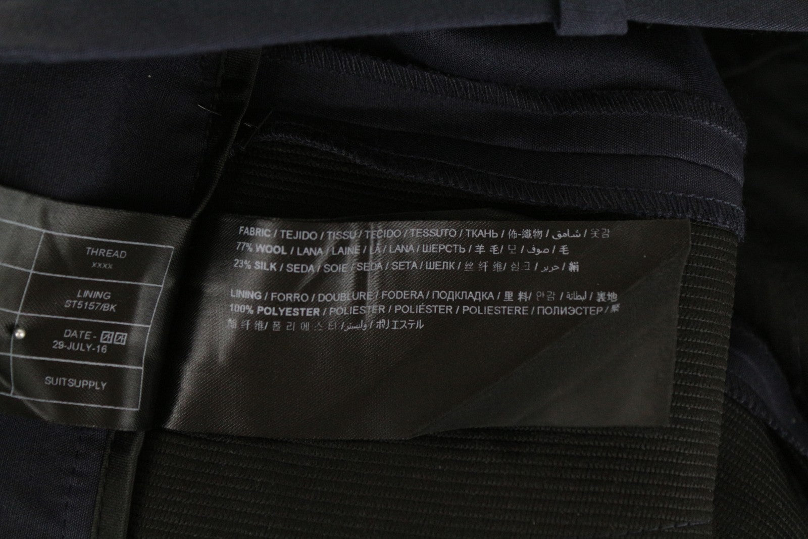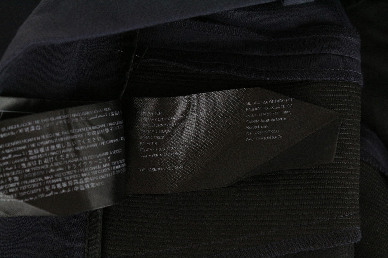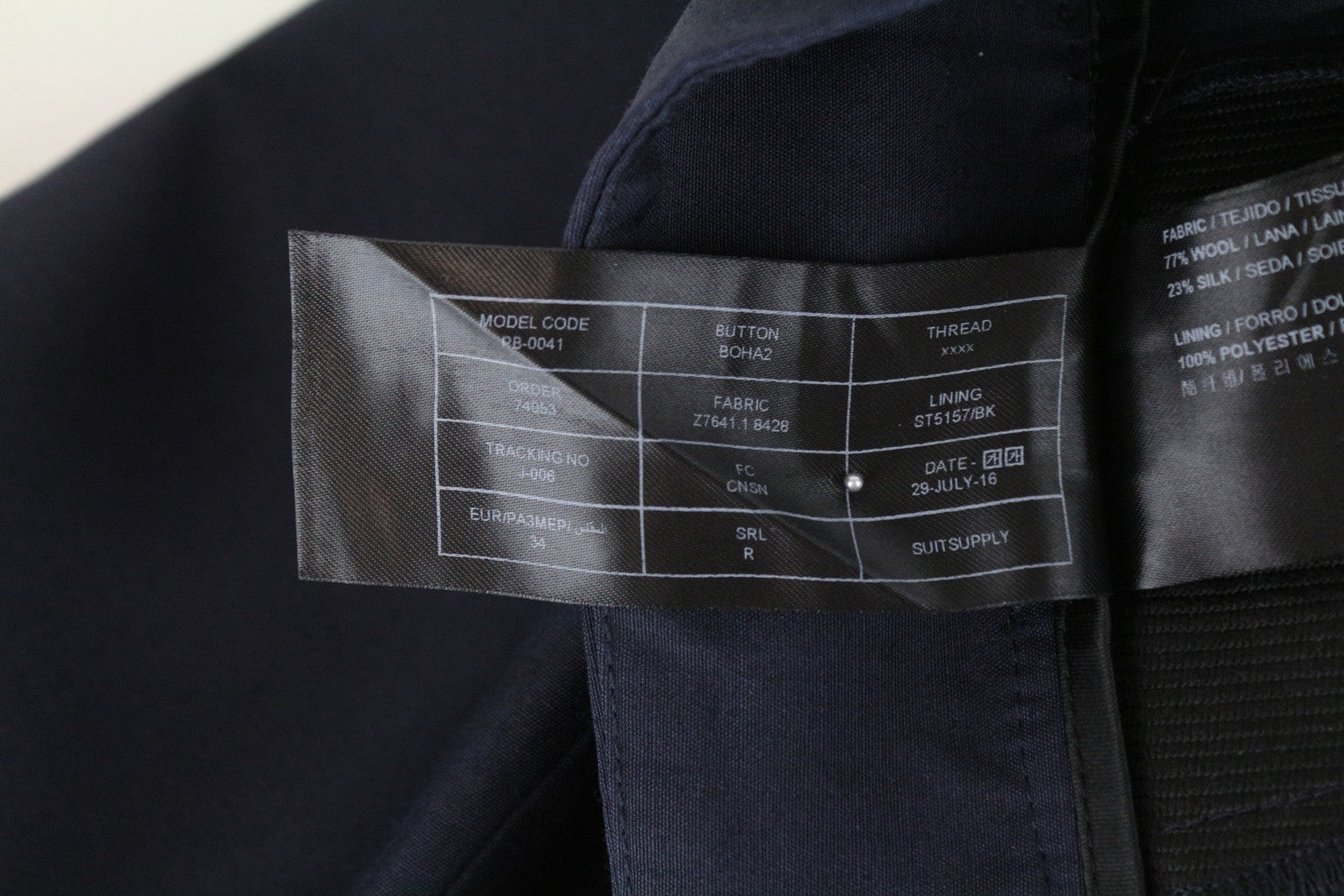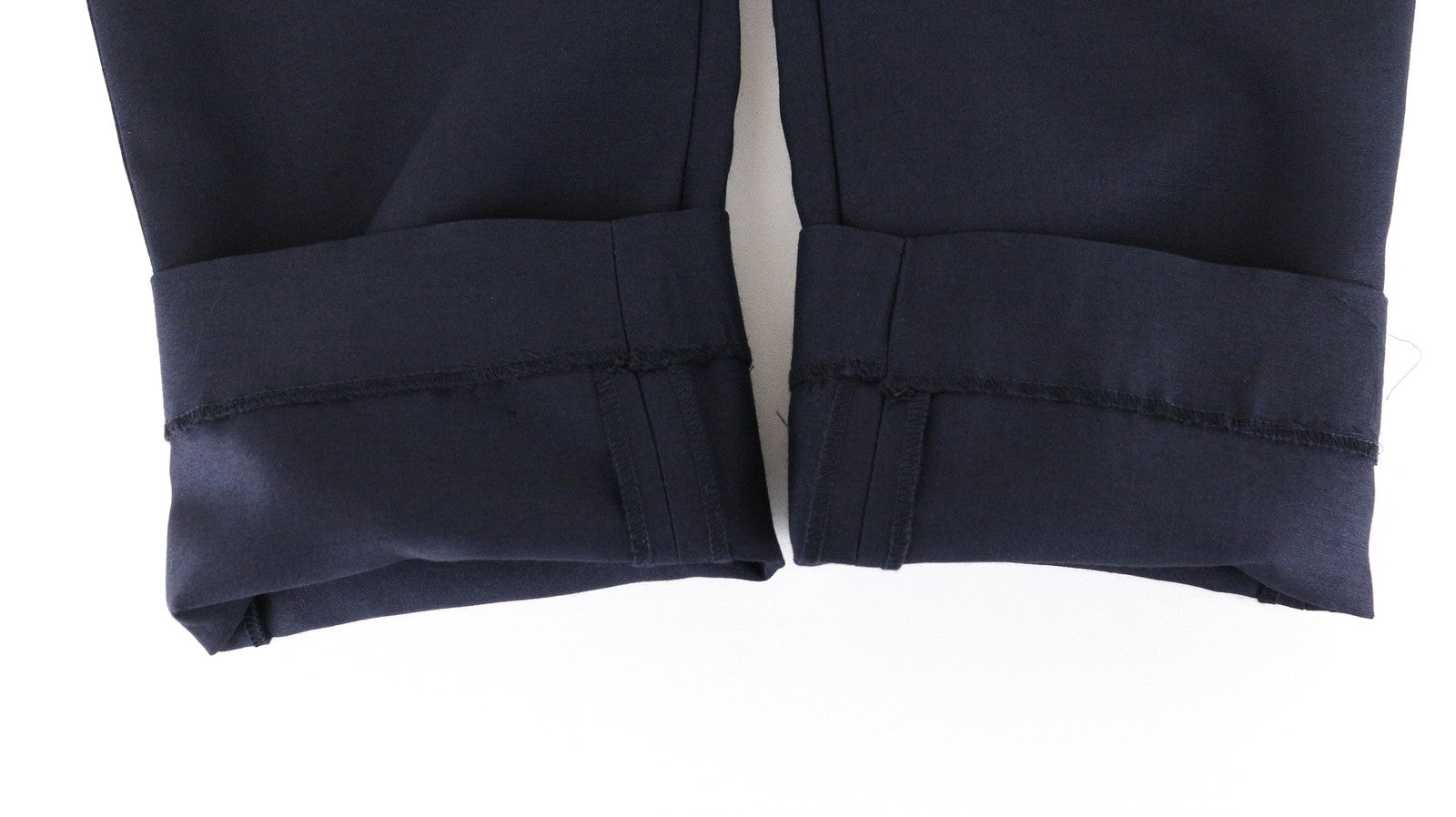 SUISTUDIO Lucian Tamsiai mėlynos vilnos ir šilko kelnės EU34R klostuotas pamušalas klasikinės moteriškos