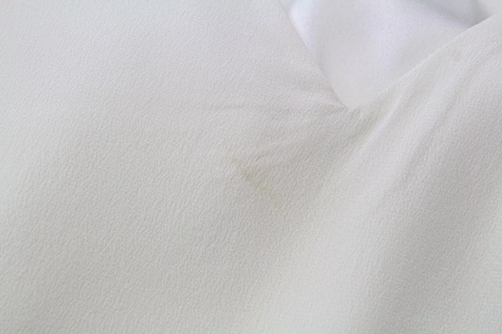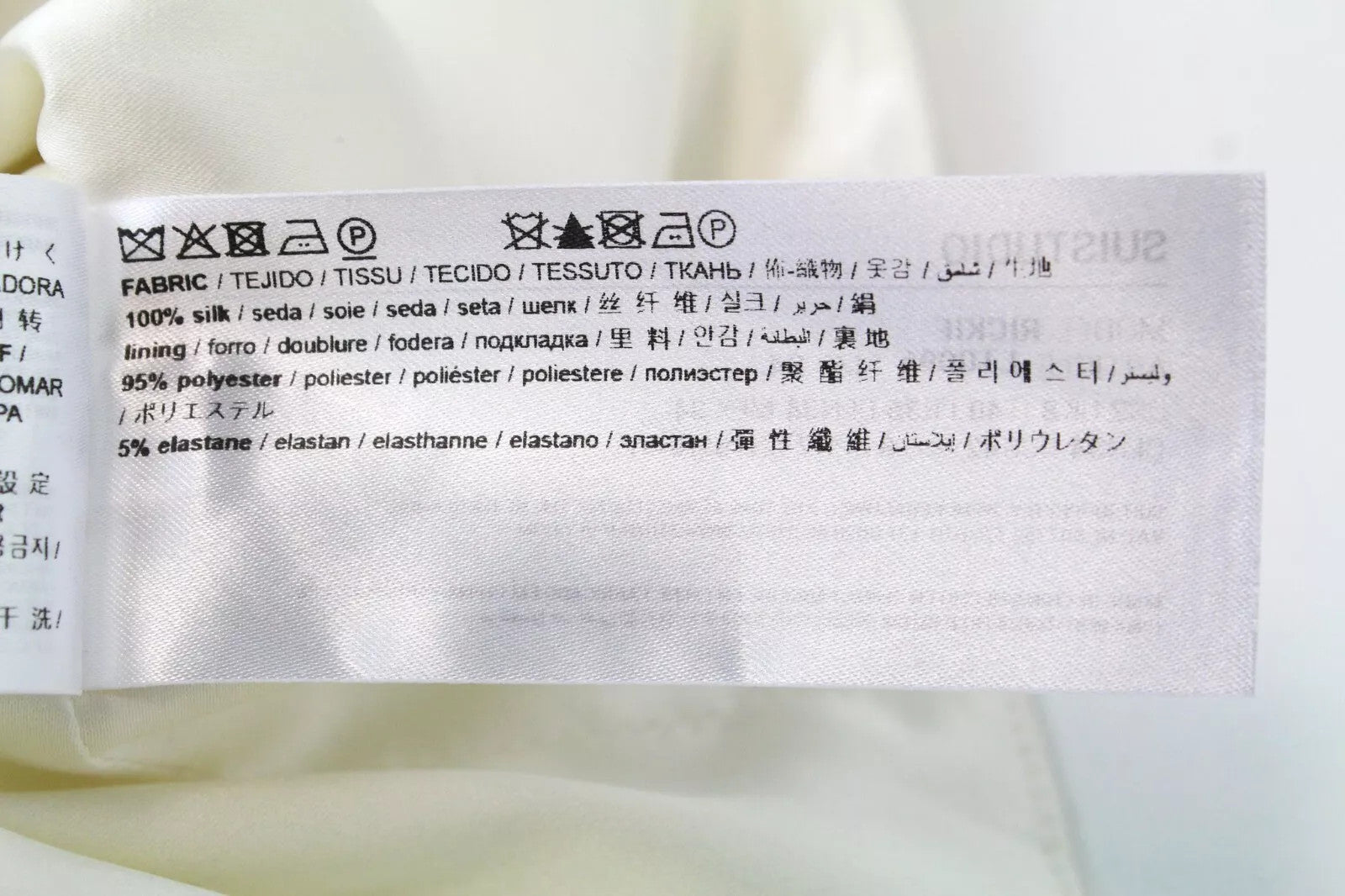 SUISTUDIO Rickie moteriški marškinėliai, UK8, balkšvi, šilkinis megztinis su V formos iškirpte ir pamušalu