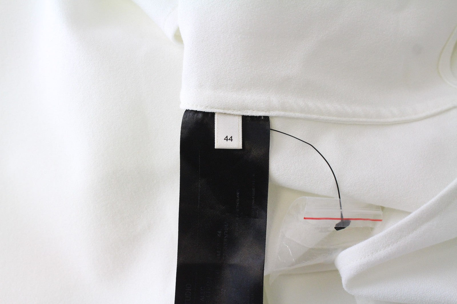 SUISTUDIO moteriški marškinėliai EU44 ilgomis rankovėmis, balti, tamprūs, klasikiniai, su smailia apykakle