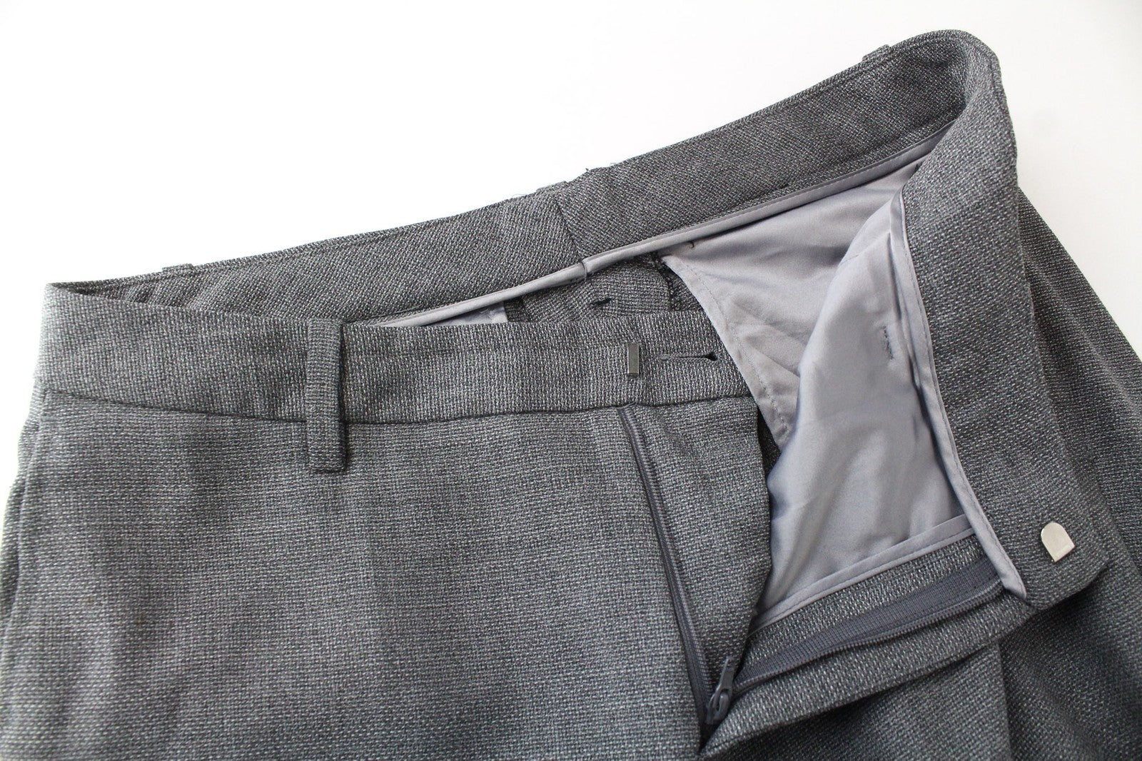 SUISTUDIO moteriškos kelnės UK12R pilkos vilnonės klostuotos elegantiškos, pritaikytos oficialios kelnės