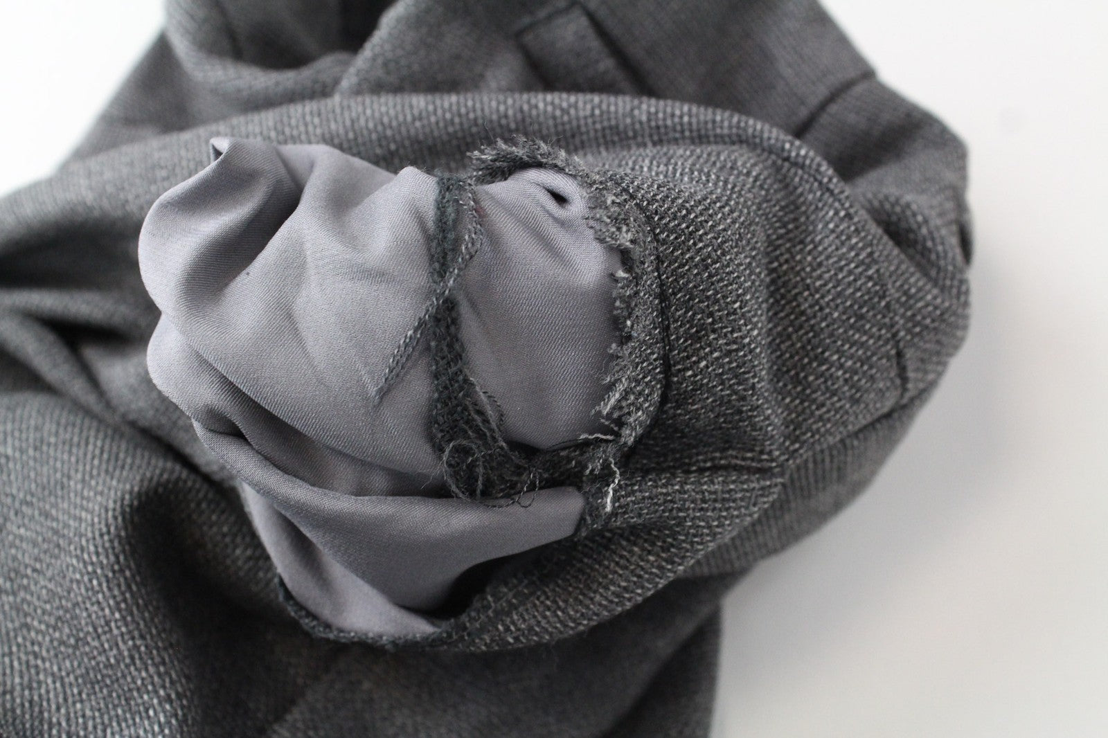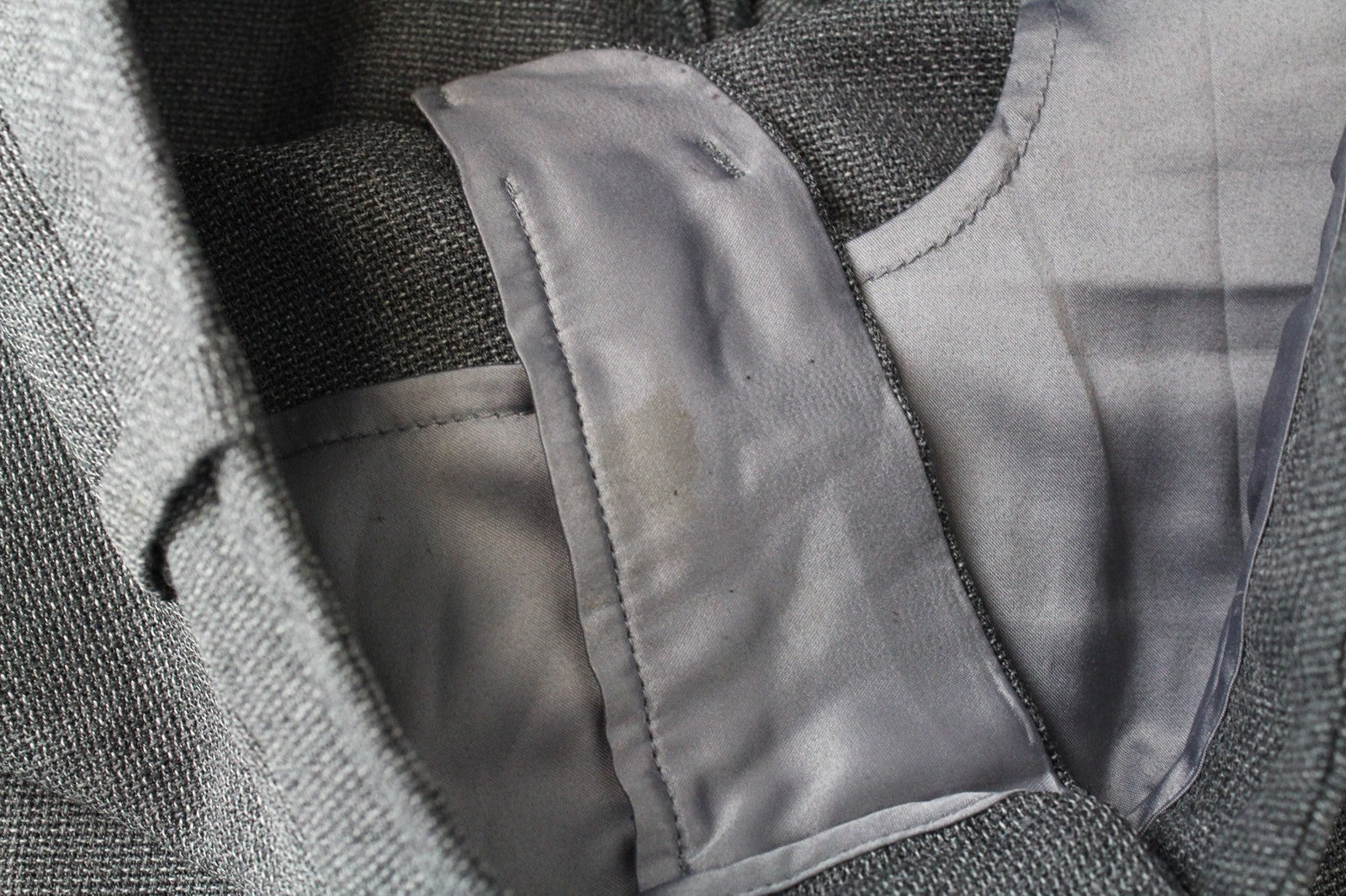 Būklė: Dėvėta. Sulopyti apvadai ir juosmuo. Dėmės viduje, ištrauktas siūlas nugaroje. Įplyšimai kišenių viduje. Žiūrėti pridėtas nuotraukas.