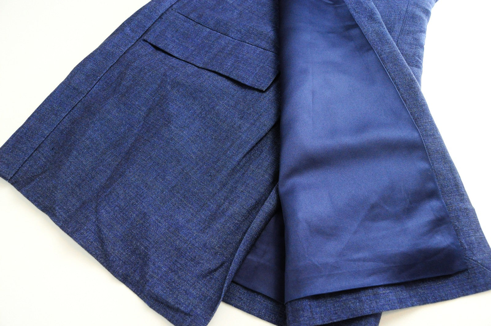 SUISTUDO Orion Womens Top UK8 Sleeveless Blue Linen Wool V-Neck Lined Dress