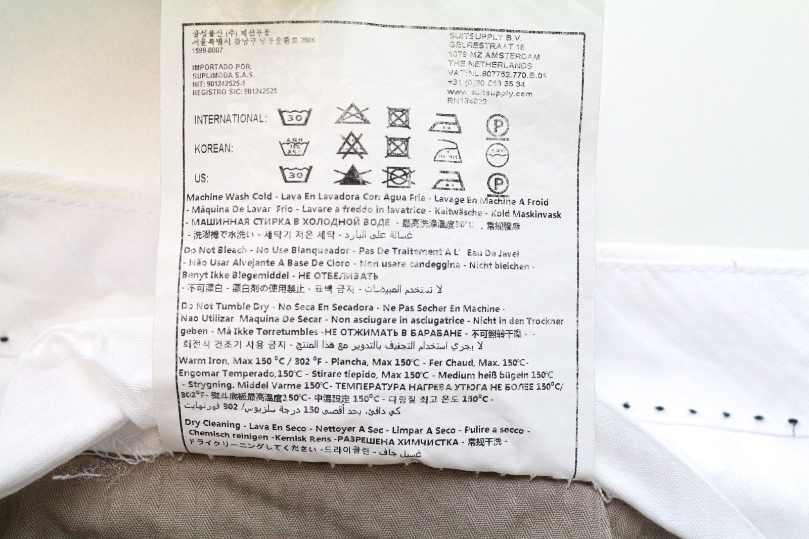 SUITSUPPLY Braddon vyriškos kelnės, UK42R, balkšvos, tamprios medvilnės kelnės su atlenkiamu apvadu