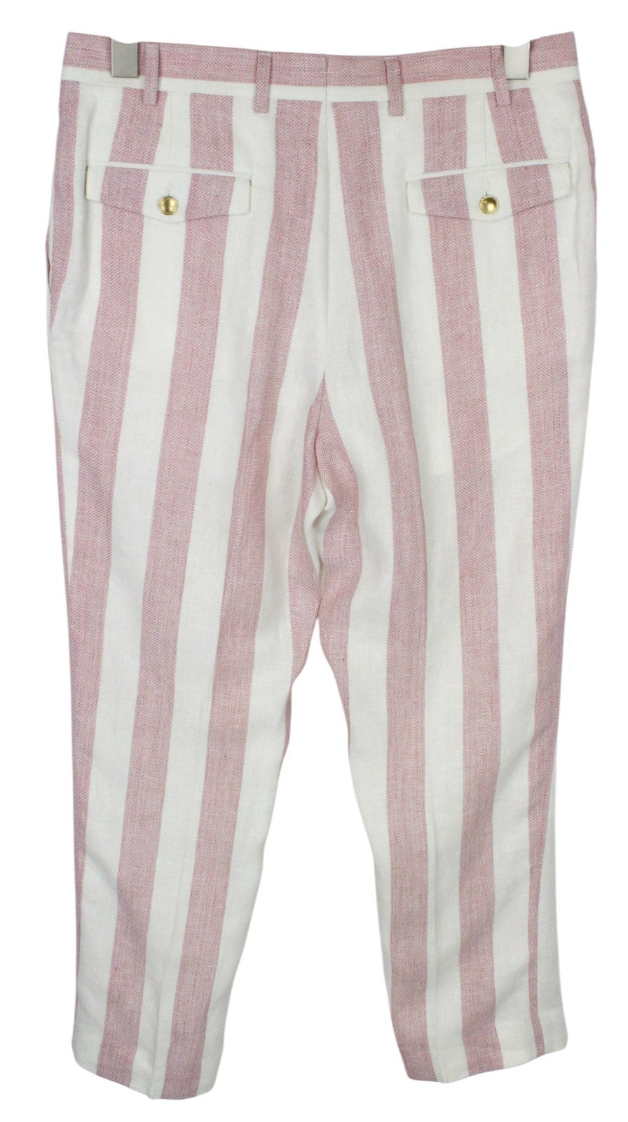 SUITSUPPLY Brescia vyriškos kelnės, UK36S, baltos ir rožinės spalvos lino mišinio siaurėjantis kirpimas, užtrauktukas