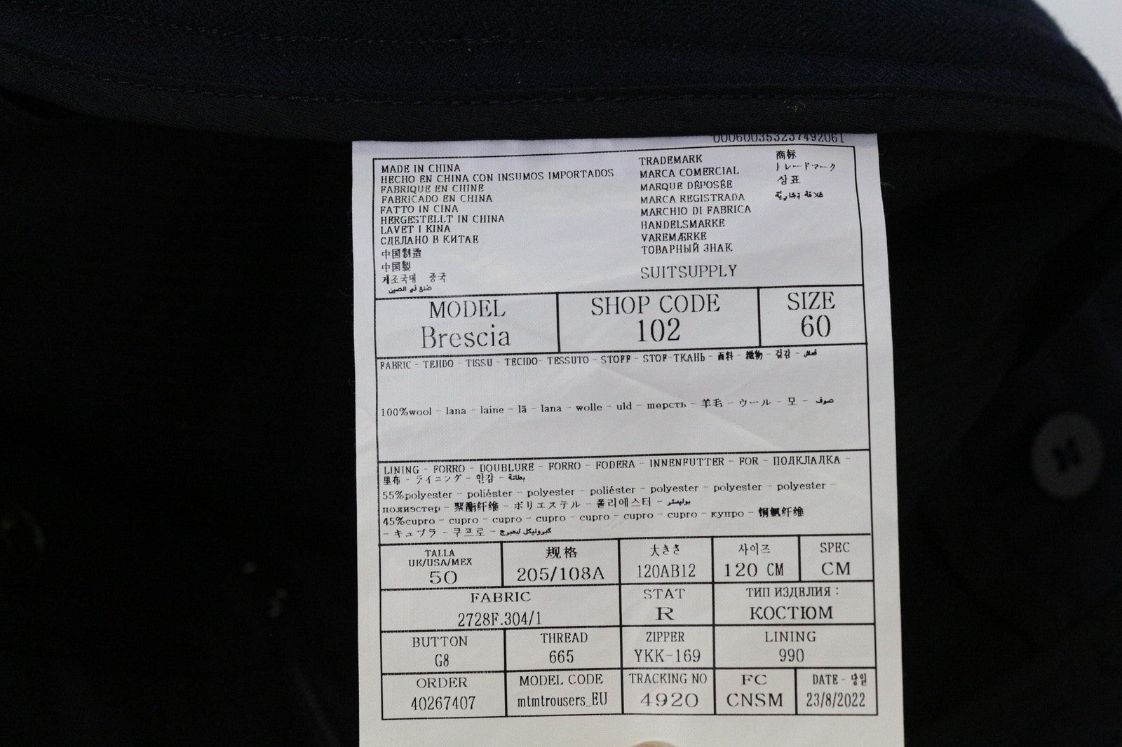SUITSUPPLY Brescia Men's Navy Trousers UK50R Slim Wool Herringbone Flat-Front