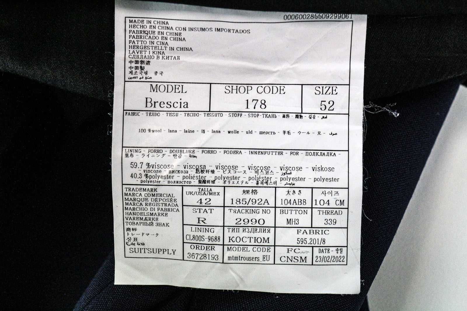 SUITSUPPLY Brescia Men's Pants UK42R Navy Wool Slim Flat-Front Classic Formal