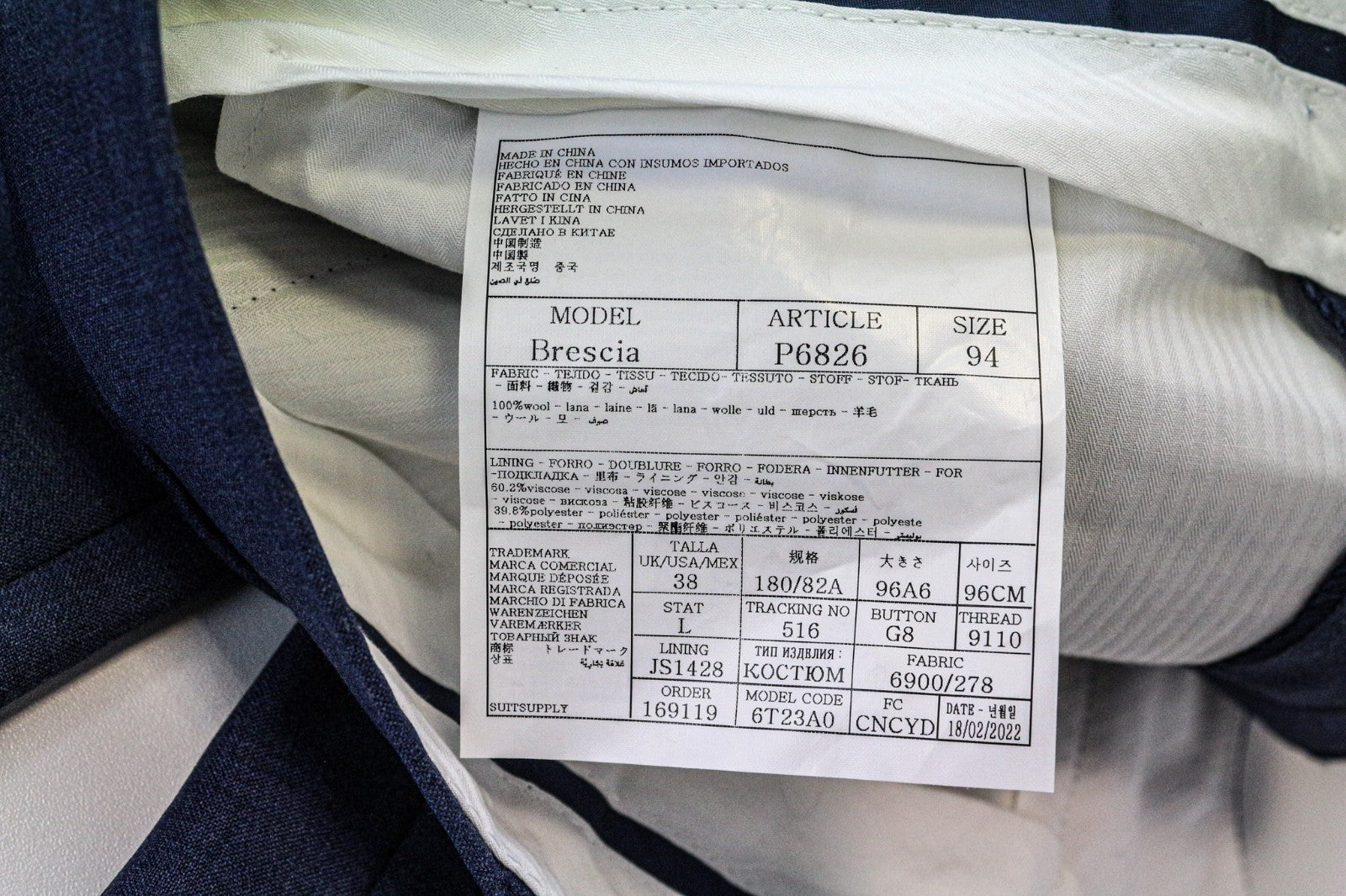 SUITSUPPLY Brescia Men's Trousers UK38L Mid Blue Slim Wool Melange Flat-Front