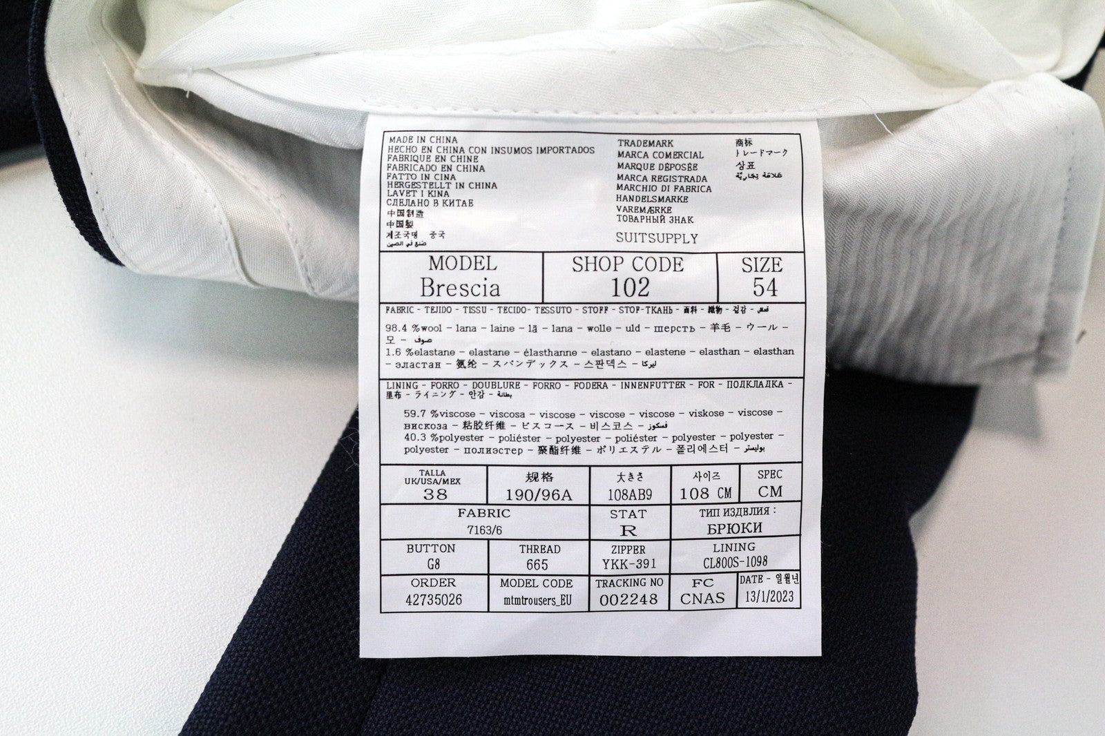 SUITSUPPLY Brescia Men's Trousers UK38R Navy Wool Stretch Classic Pleated Fit