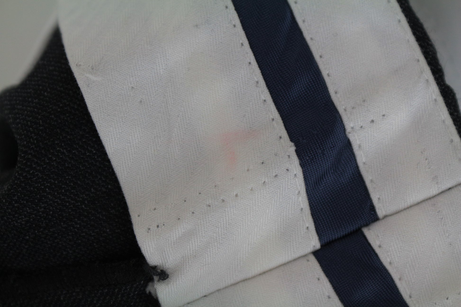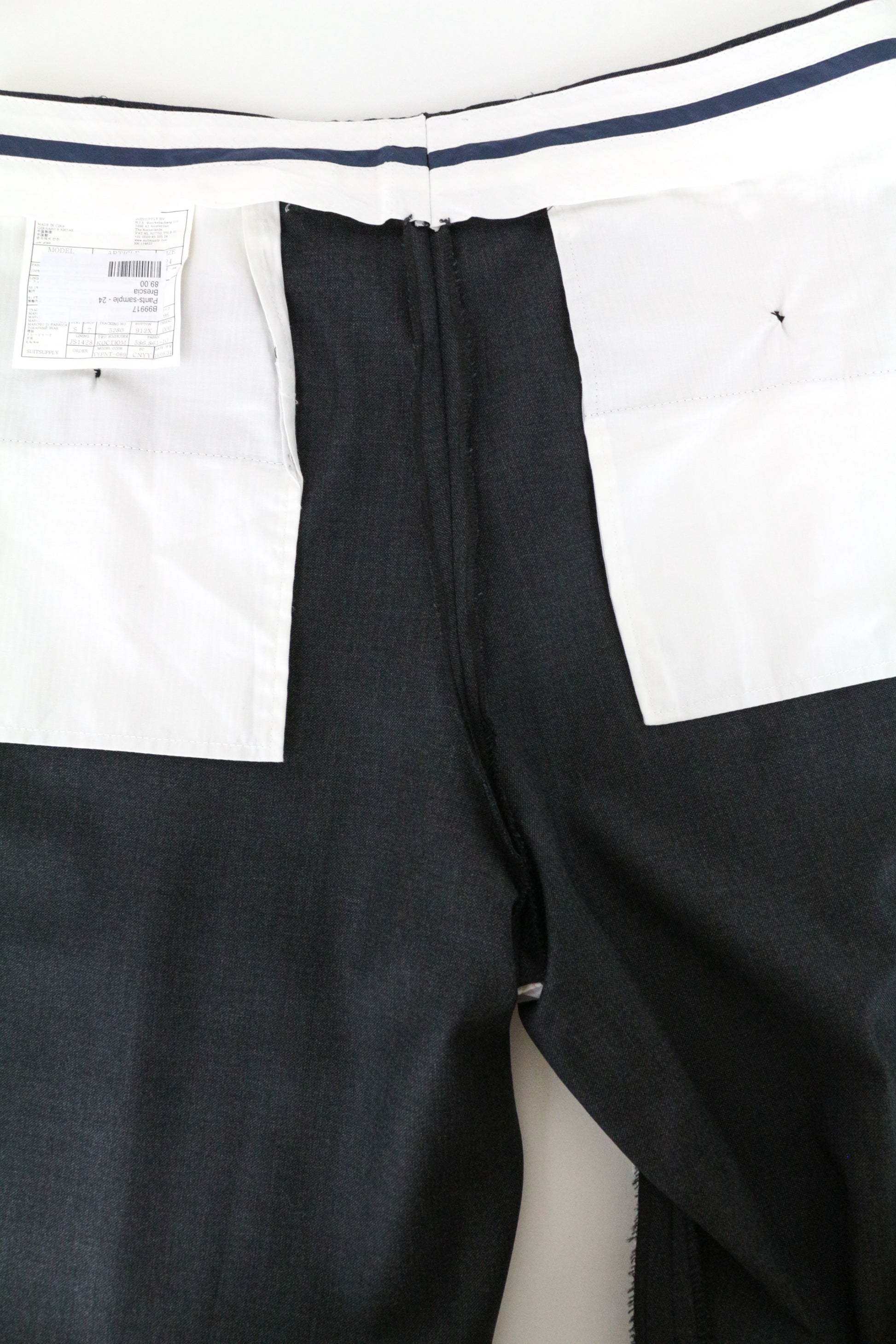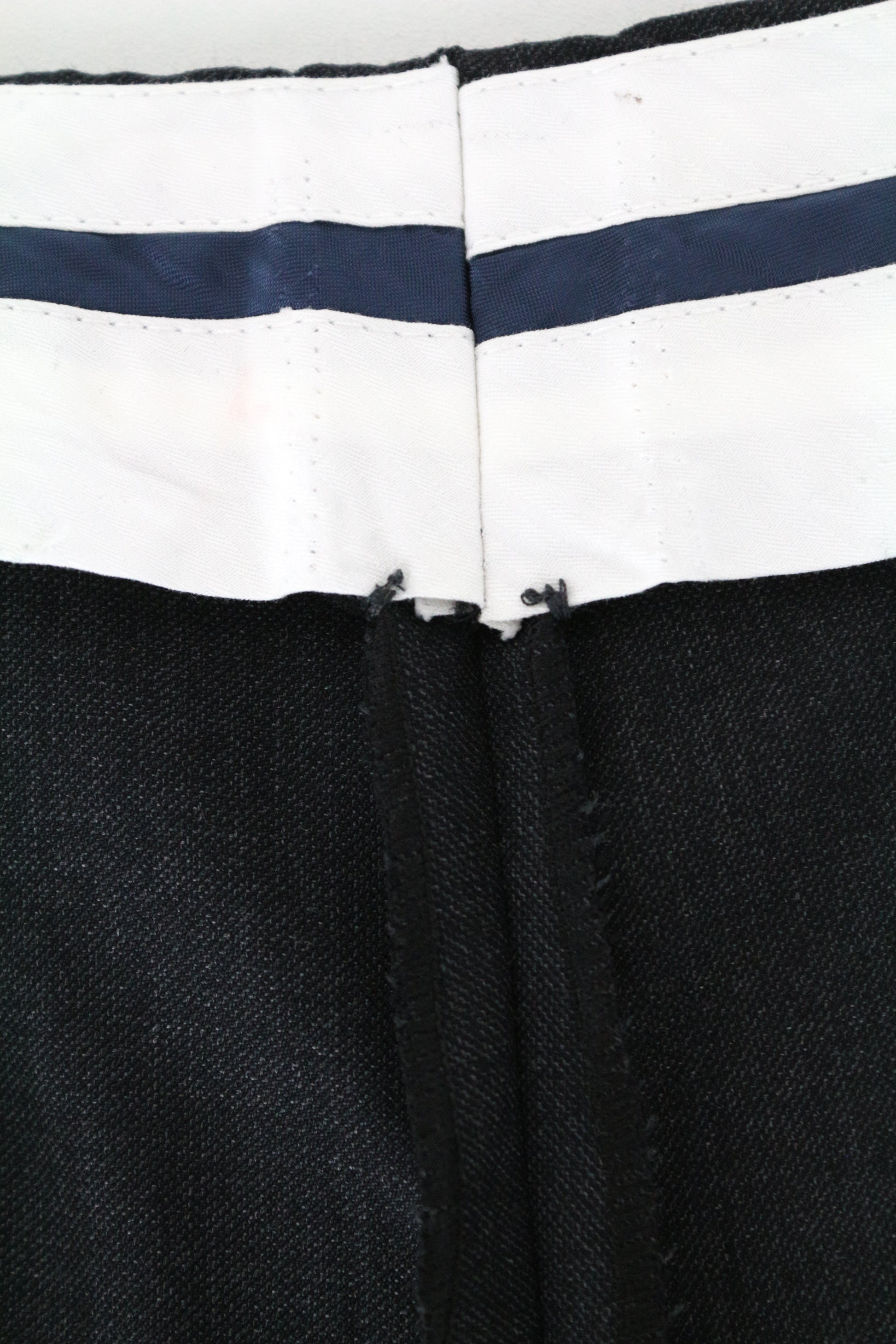 Used Good. Mended waistline, hems and inner trousers' lining around the crotch area. Stains on the left leg t the back and on the inside. Please see added photos.