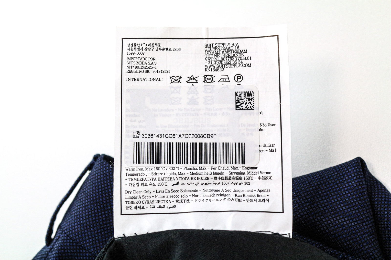 SUITSUPPLY Brescia Men's Trousers UK44R Blue Wool Slim Bird's Eye Flat Front