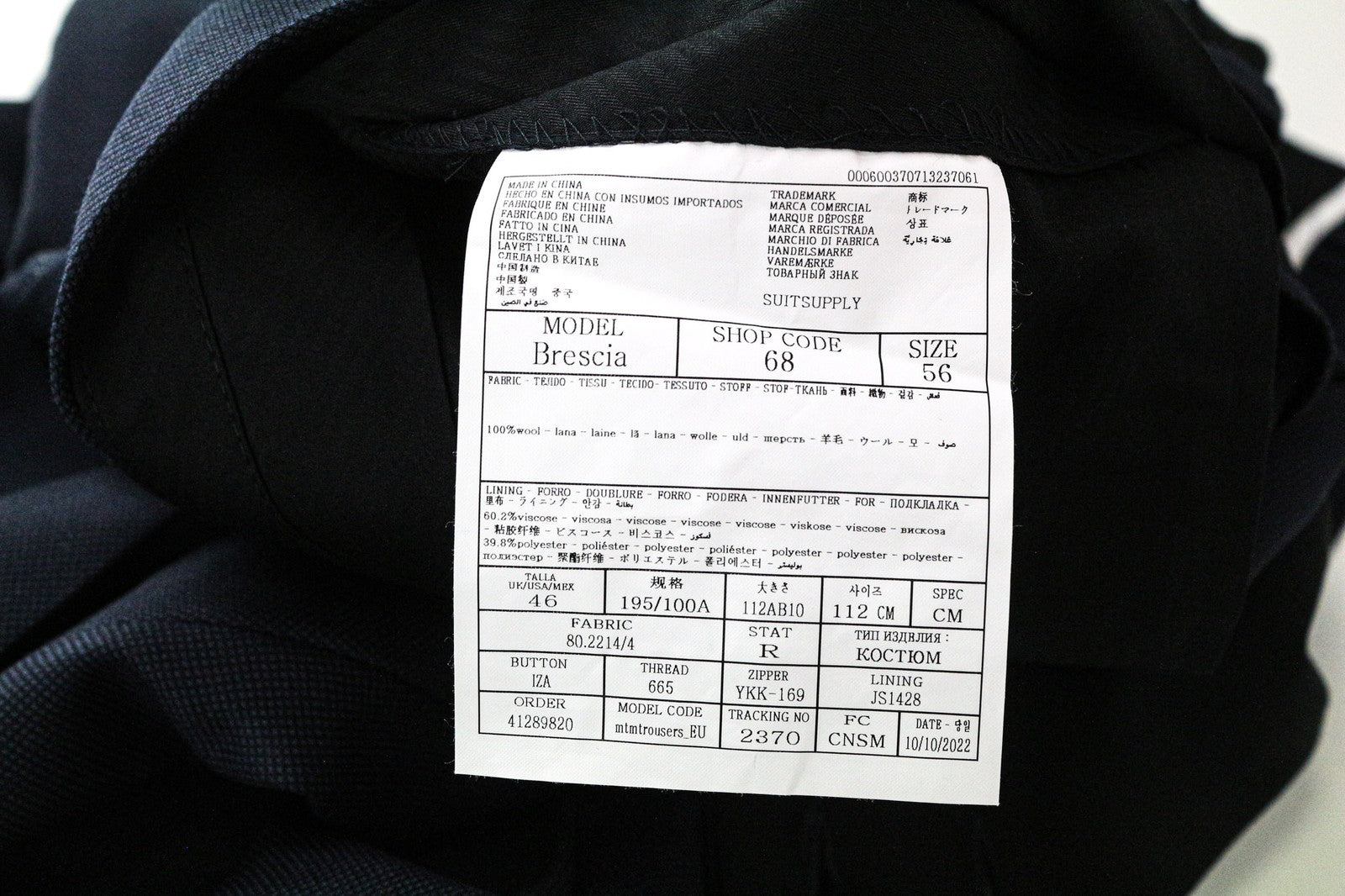 SUITSUPPLY Brescia Men's Trousers UK46R Dark Blue Wool Lined Pleated Front Slim