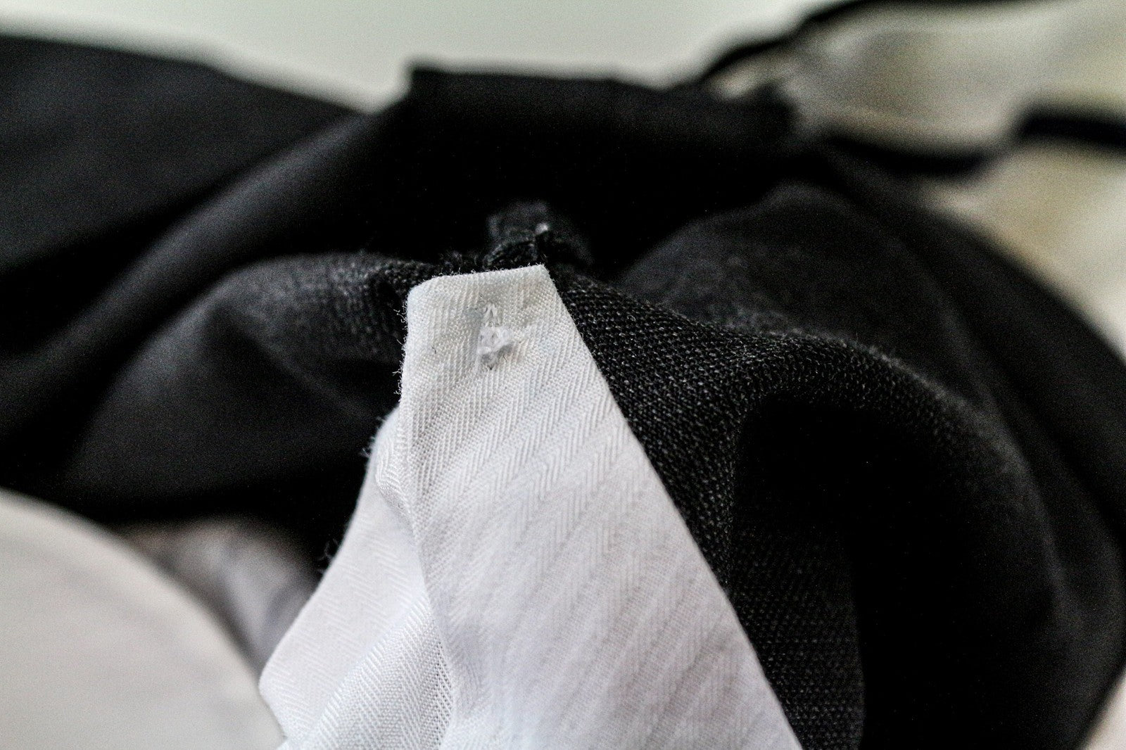 SĄLYGA: Stained on the inside: waistline, pockets, and crotch area. A few stains on the outside as well. Please see added photos.