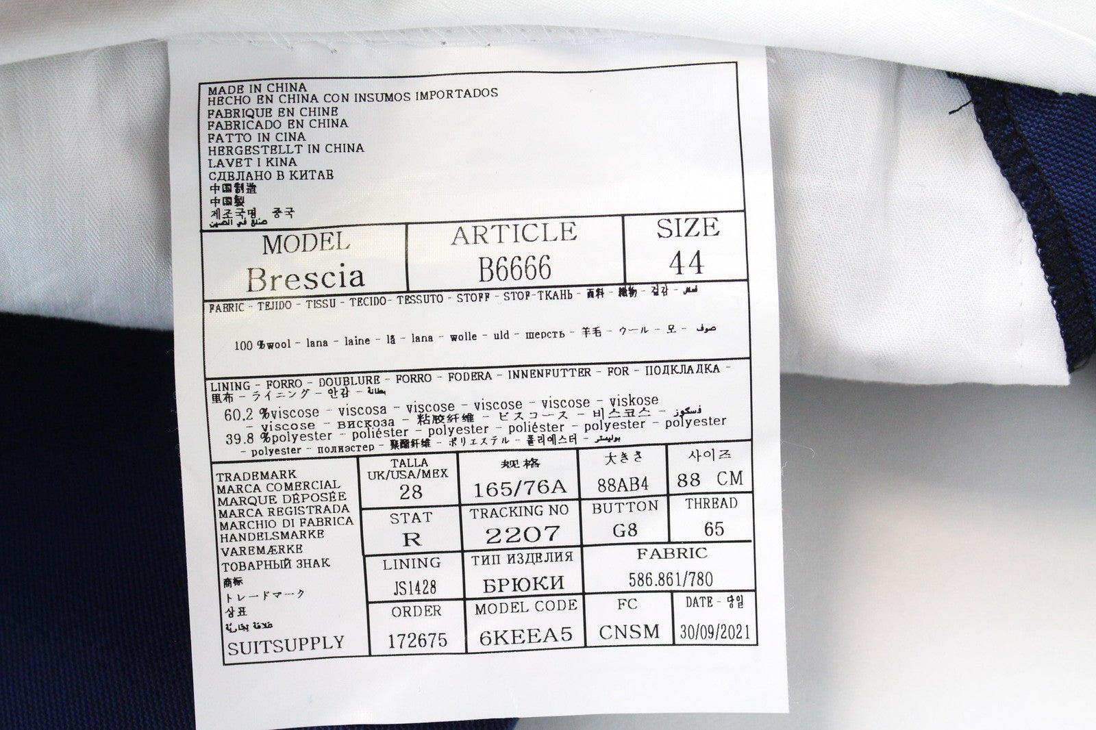 SUITSUPPLY Brescia Pants UK28R Men's Slim Blue Flat-Front Melange Wool Dress
