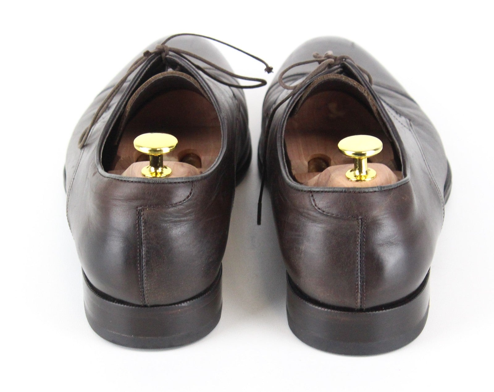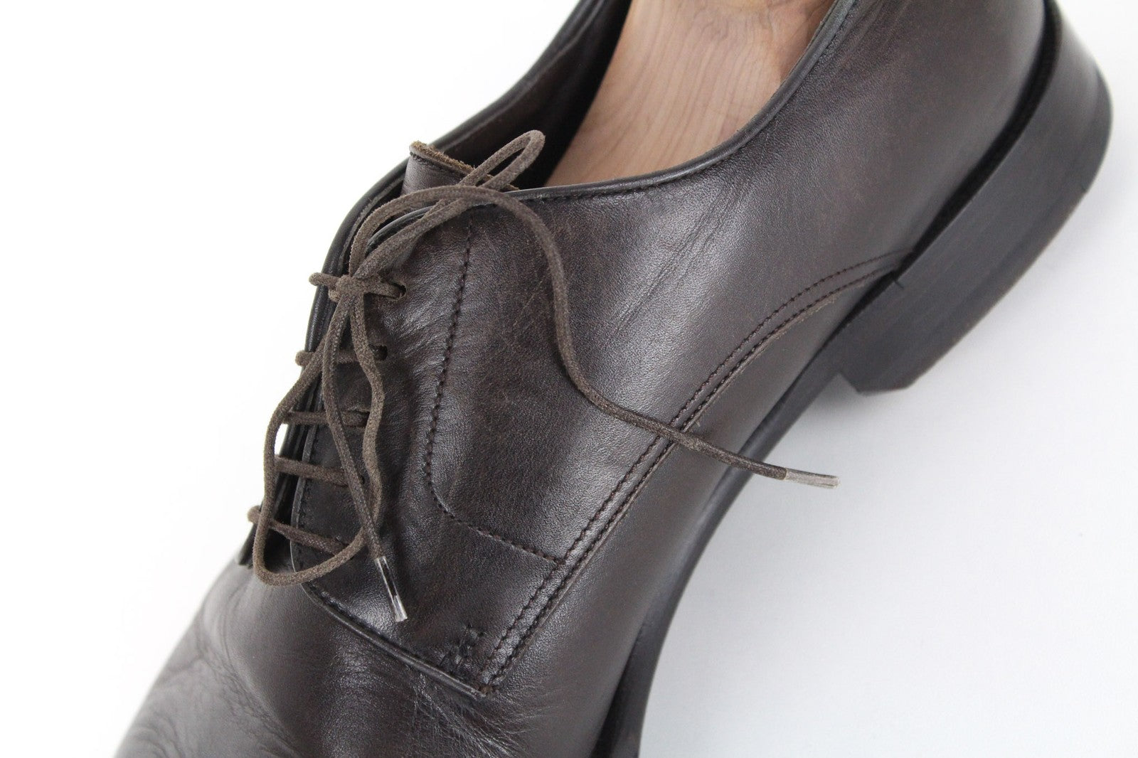 SUITSUPPLY tamsiai rudi EU44 odiniai žemapadžiai vyriški batai su raišteliais, UK10 klasikiniai