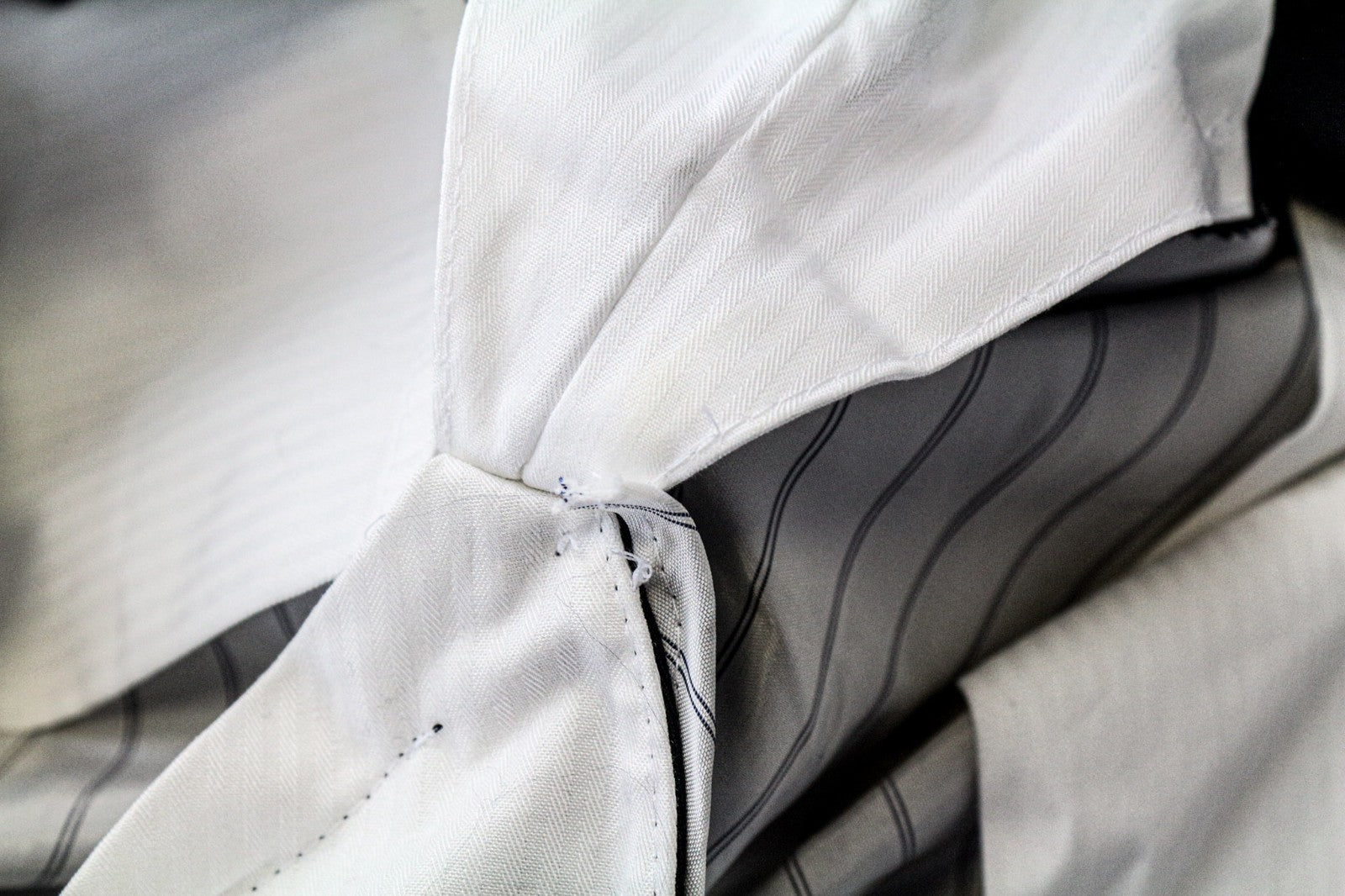 Pulled thread on the crotch area, stained on the inside. Stained right calf. Slight stain on the waistcoat's back. Please see added photos.