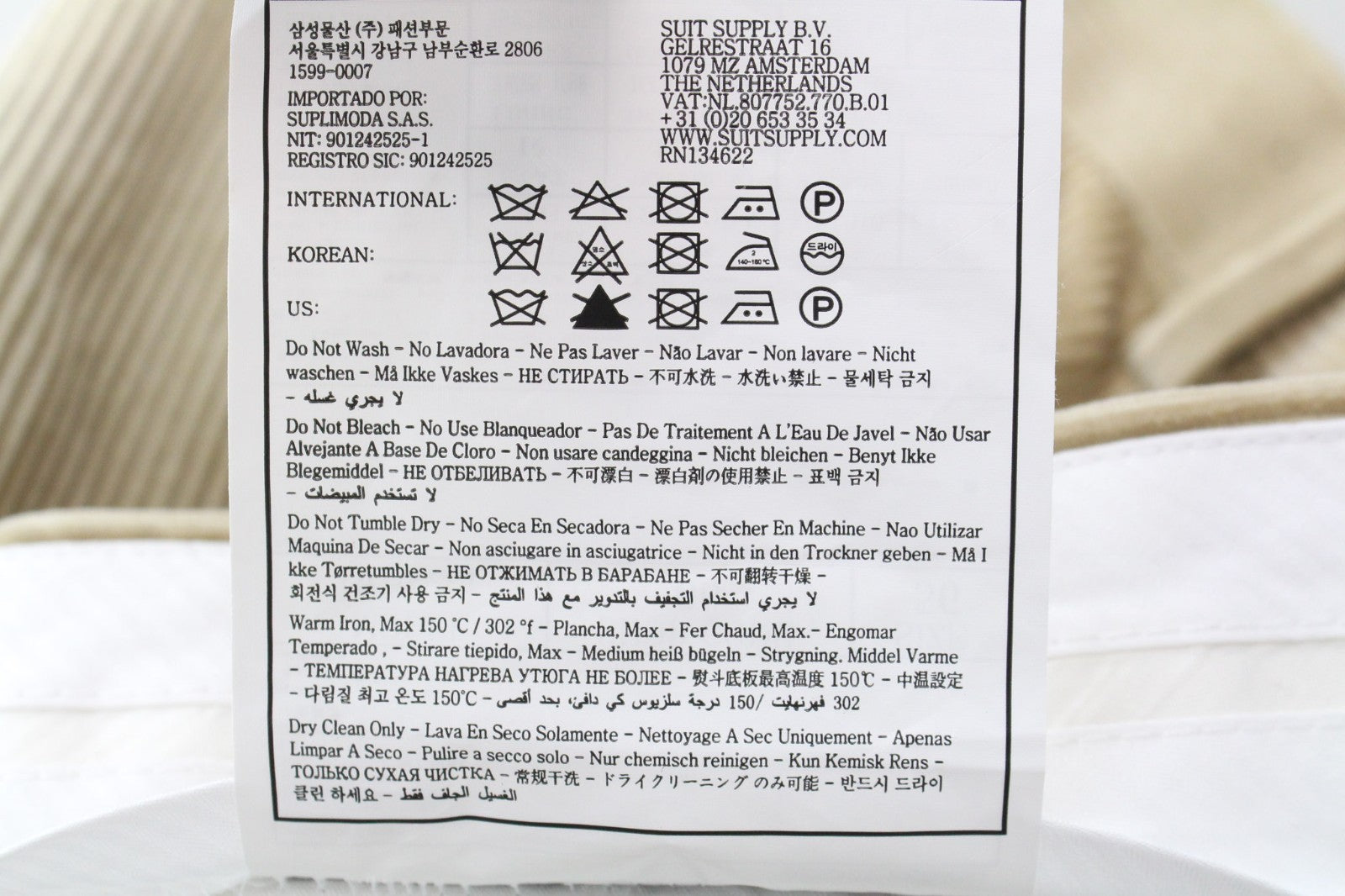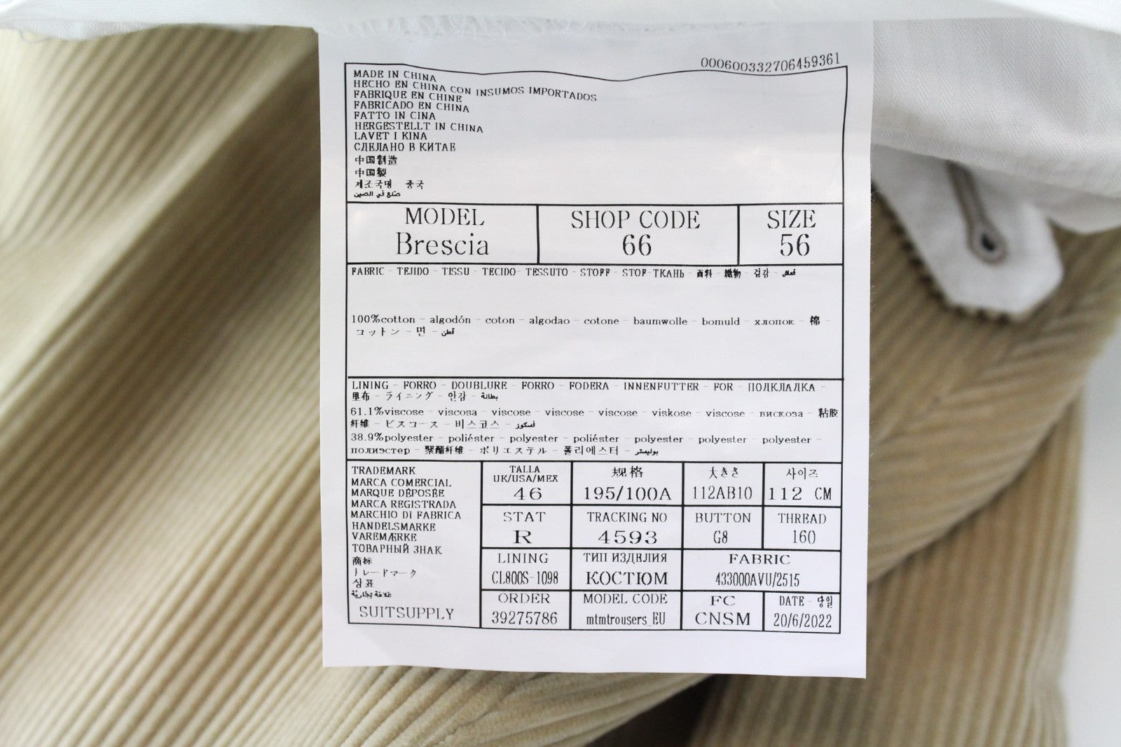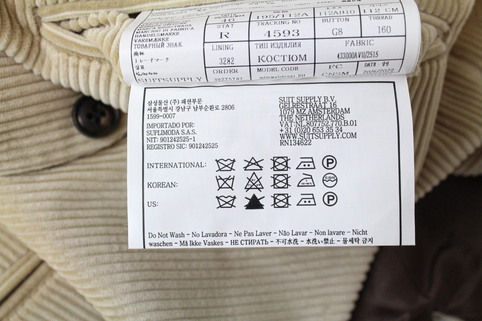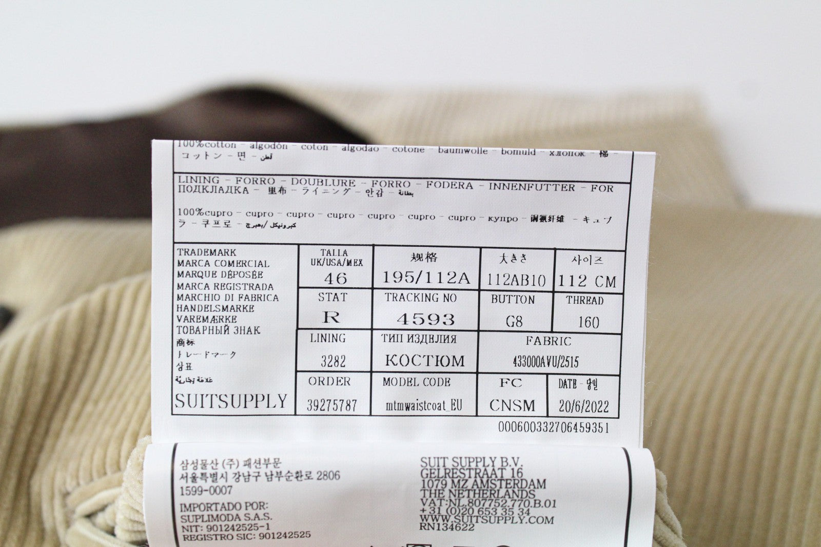 SUITSUPPLY Ferrara Men's Beige Cotton Corduroy Slim Suit UK46R Velvet 2 Piece