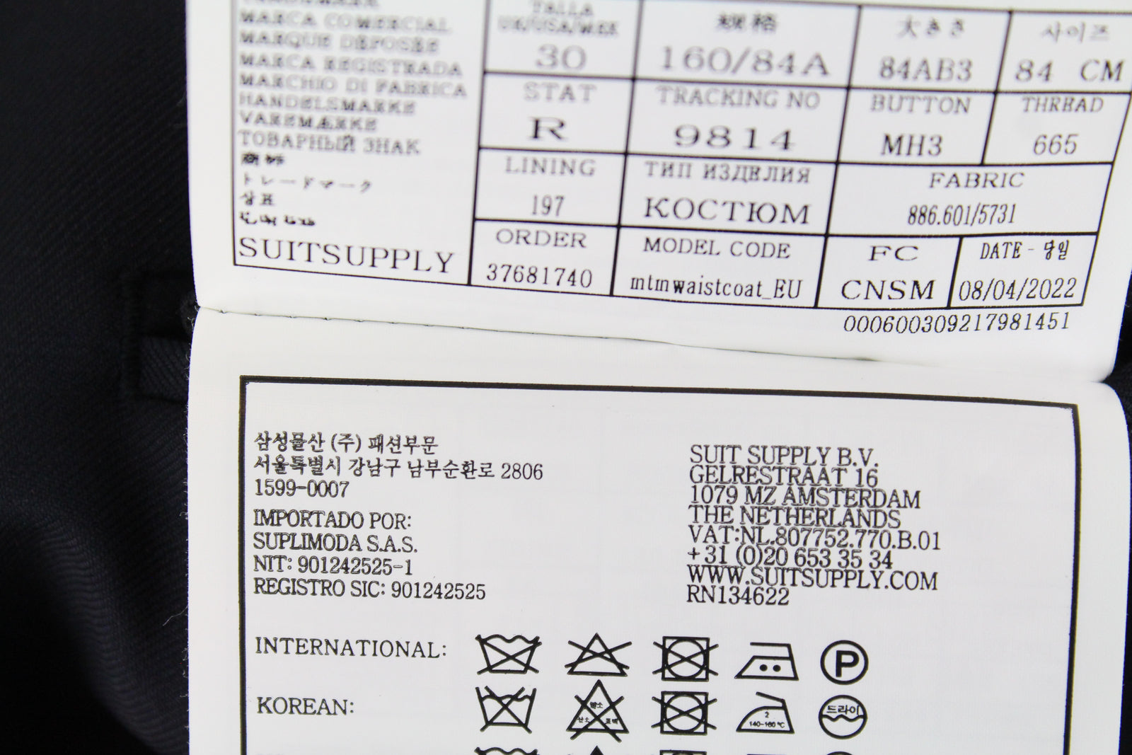 SUITSUPPLY Ferrara vyriška tamsiai mėlyna vilnonė liemenė UK30R V formos iškirpte, klasikinio stiliaus