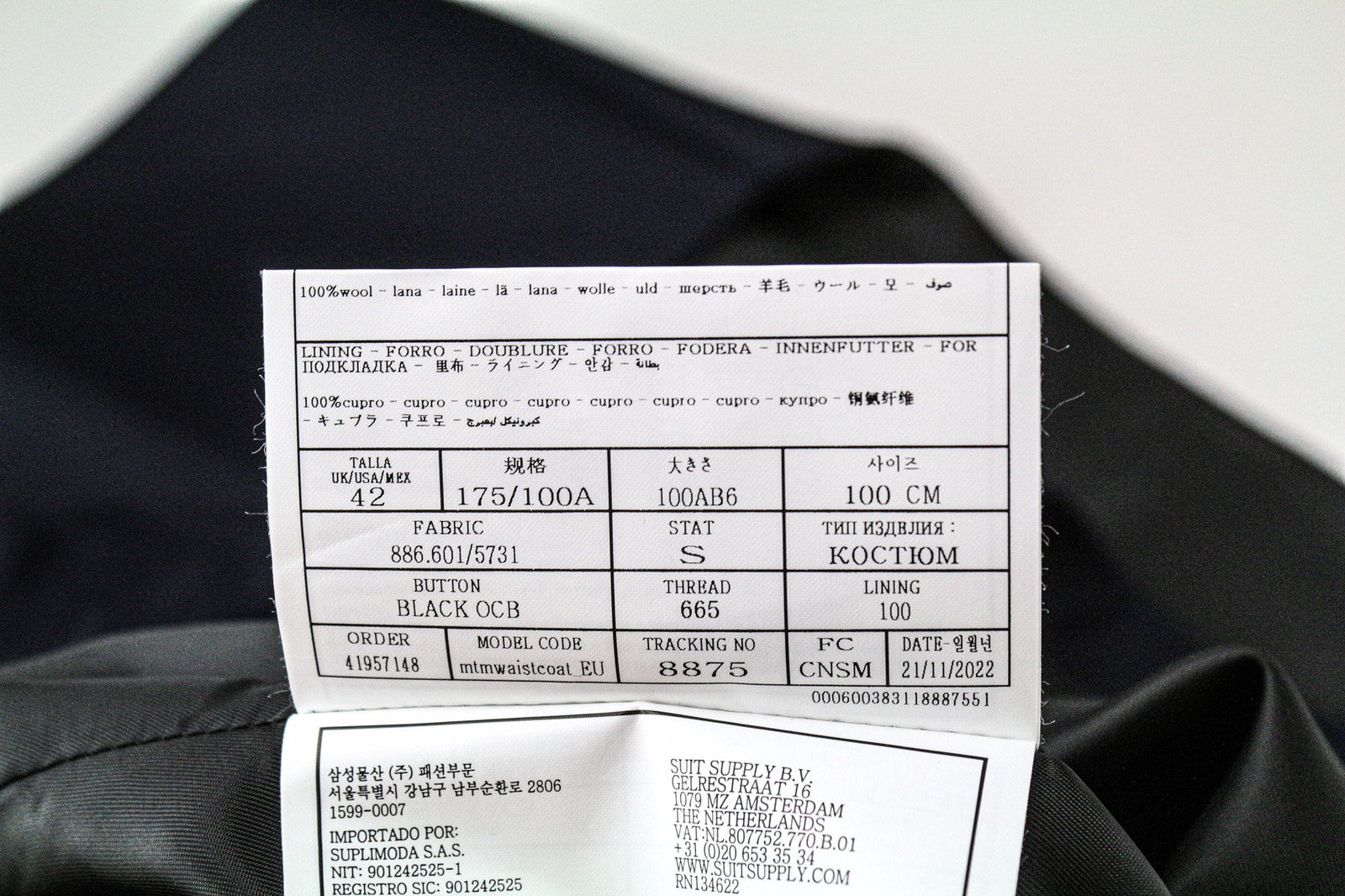 SUITSUPPLY Ferrara Men's Suit UK42S Wool Navy Blue 2-Piece Suit with Waistcoat