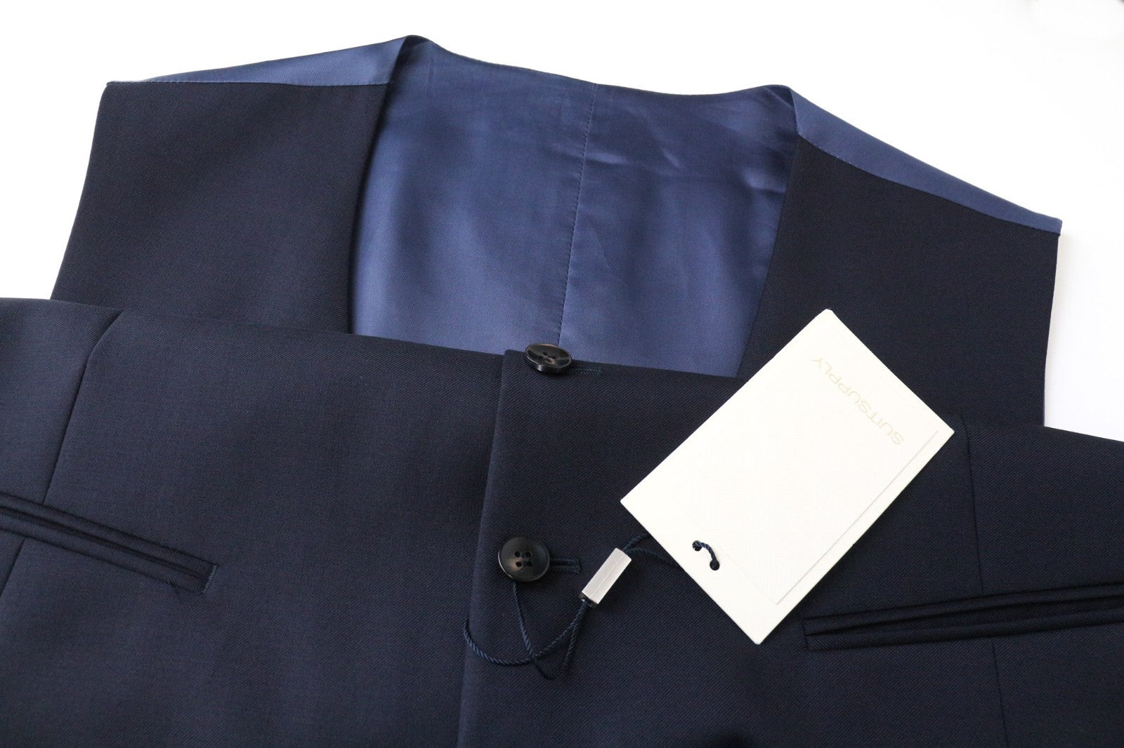 SUITSUPPLY Ferrara Men's Suit UK44S Navy Wool Lined 2 Piece Waistcoat Trousers