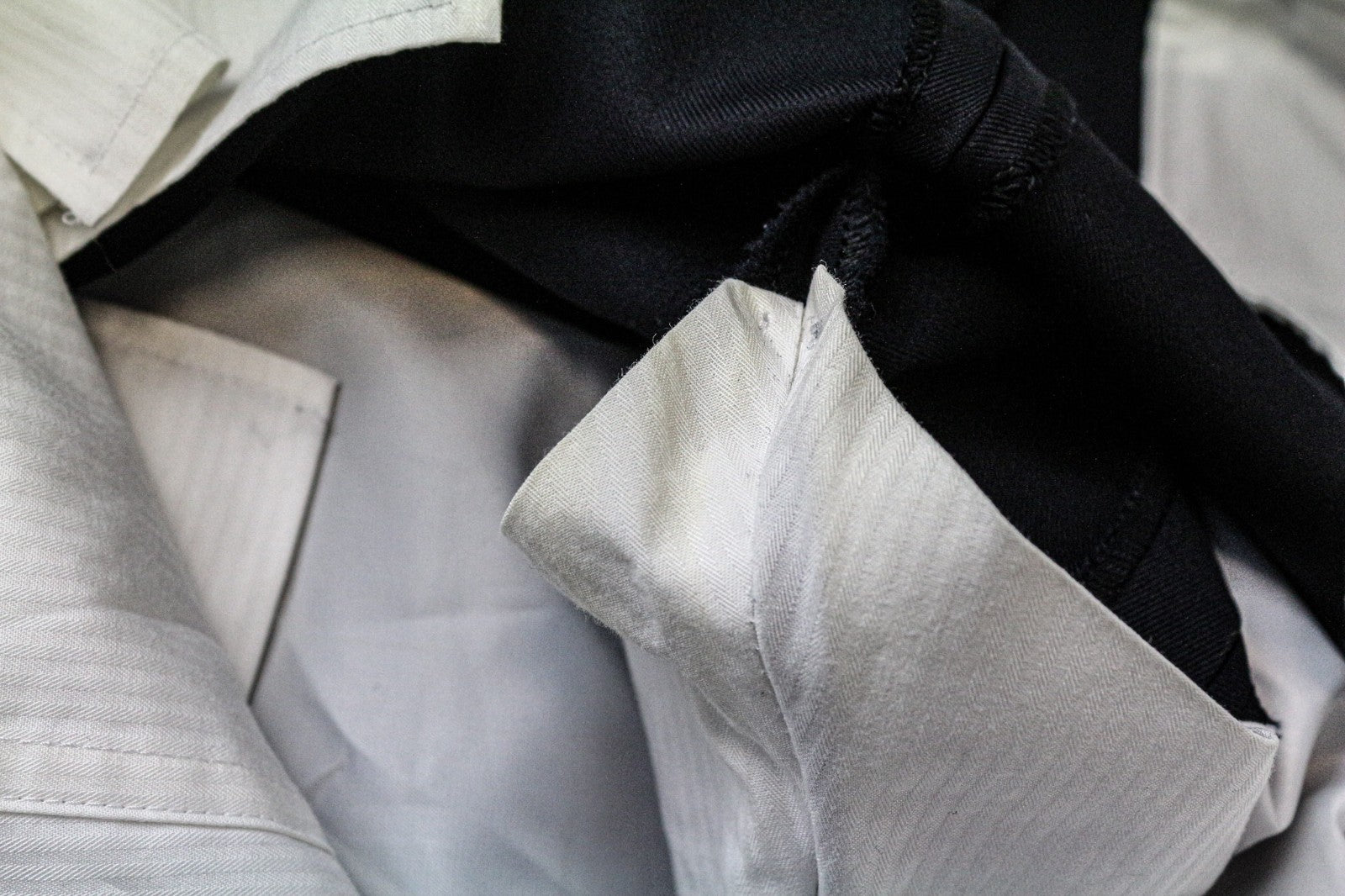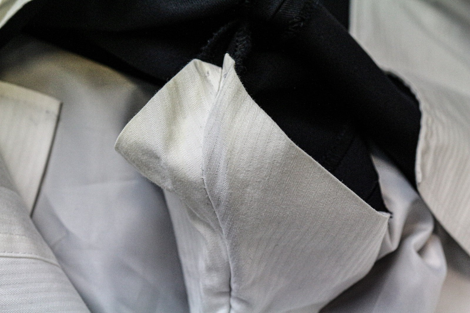 Stained on the inside, pulled threads on the back and front. Thinned out fabric on the crotch. Faded marks on the waistcoat's back. Please see added photos.