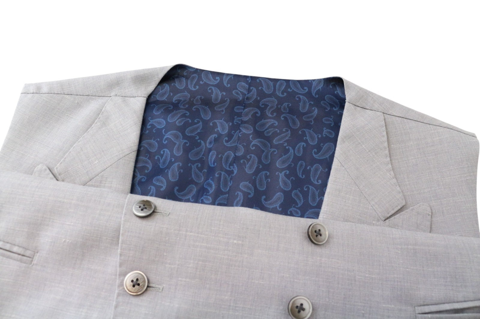 SUITSUPPLY Havana Jetted Men's Suit UK50R Grey Melange Slim 3pc Wool Silk Linen
