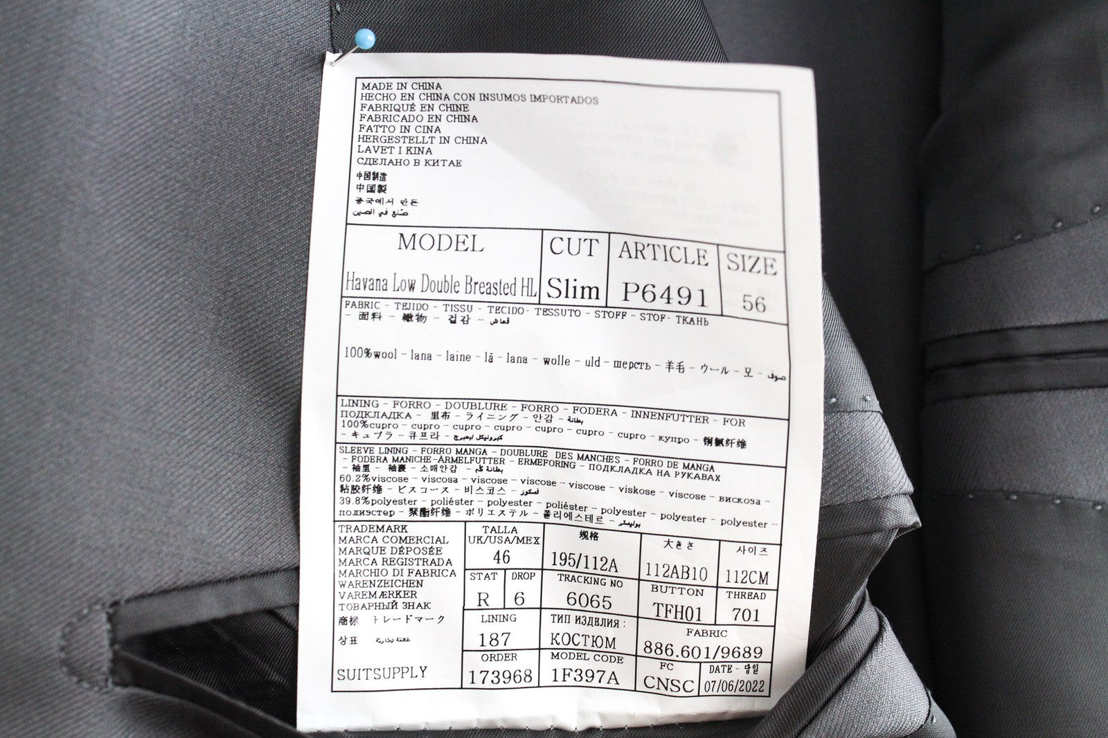 „SUITSUPPLY“ vyriškas Havanos švarkas, pilkas, vilnonis, S110, dvieilis, plonas