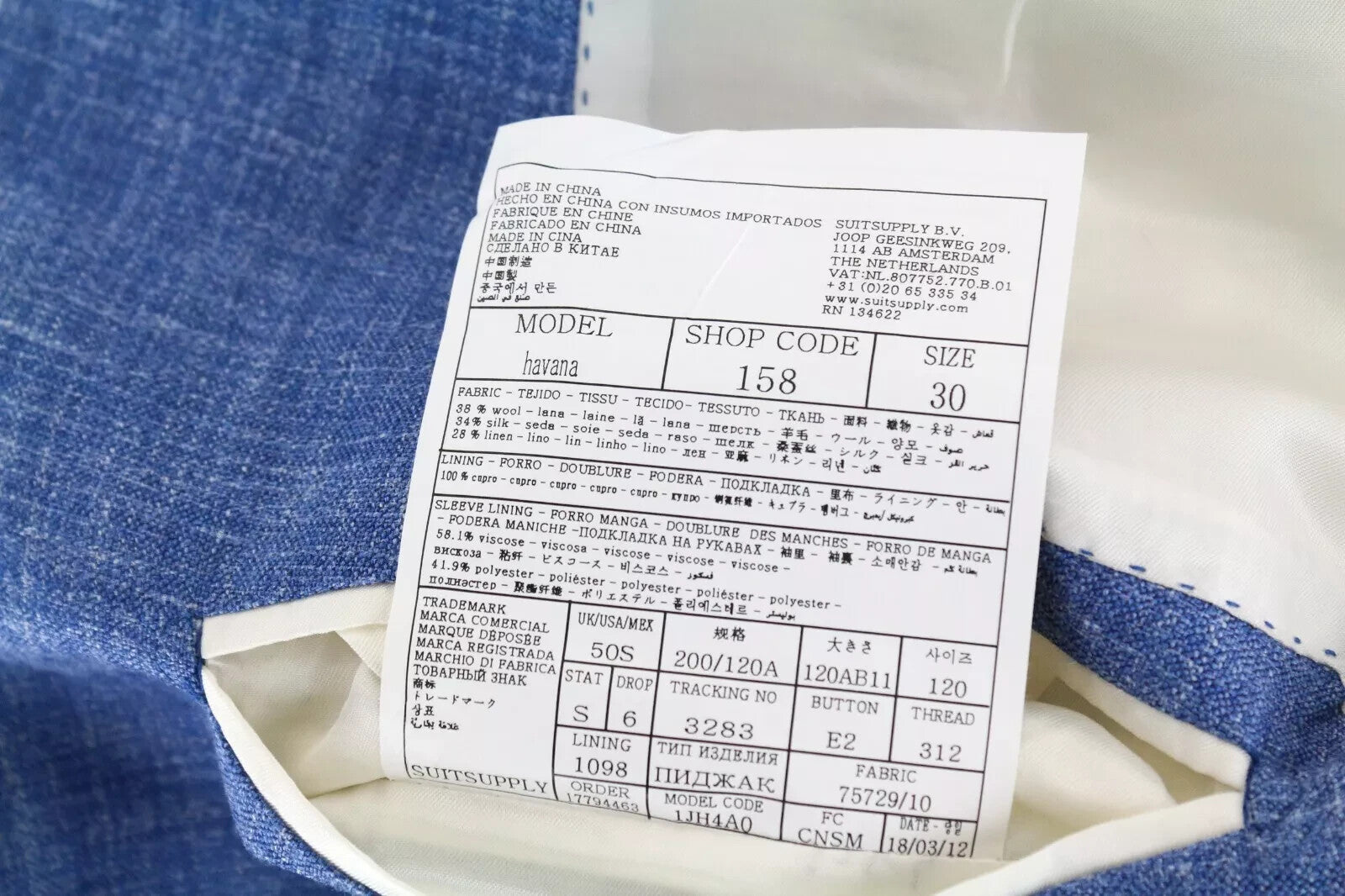 SUITSUPPLY vyriškas Havanos švarkas UK50S mėlynas vilnonis šilkas lininis klasikinis