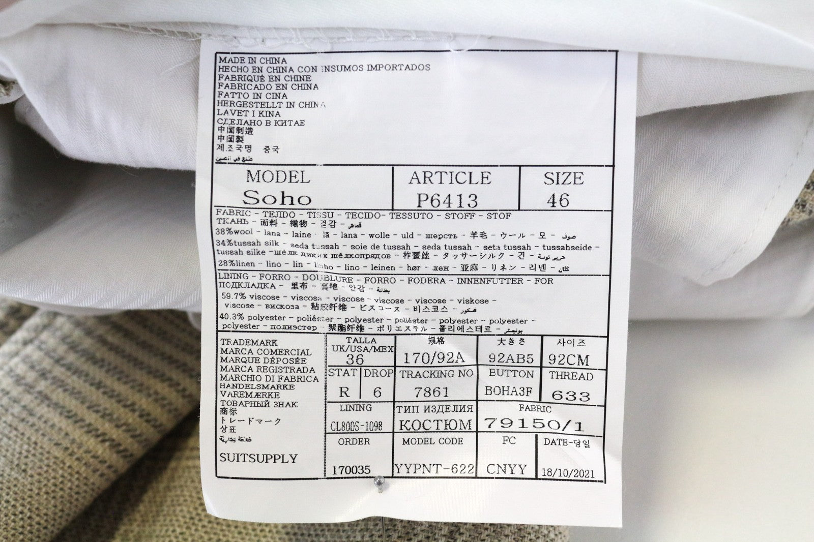 SUITSUPPLY Havana Men's Suit UK36R Beige Check Slim 2Pc Wool Silk Linen Blend