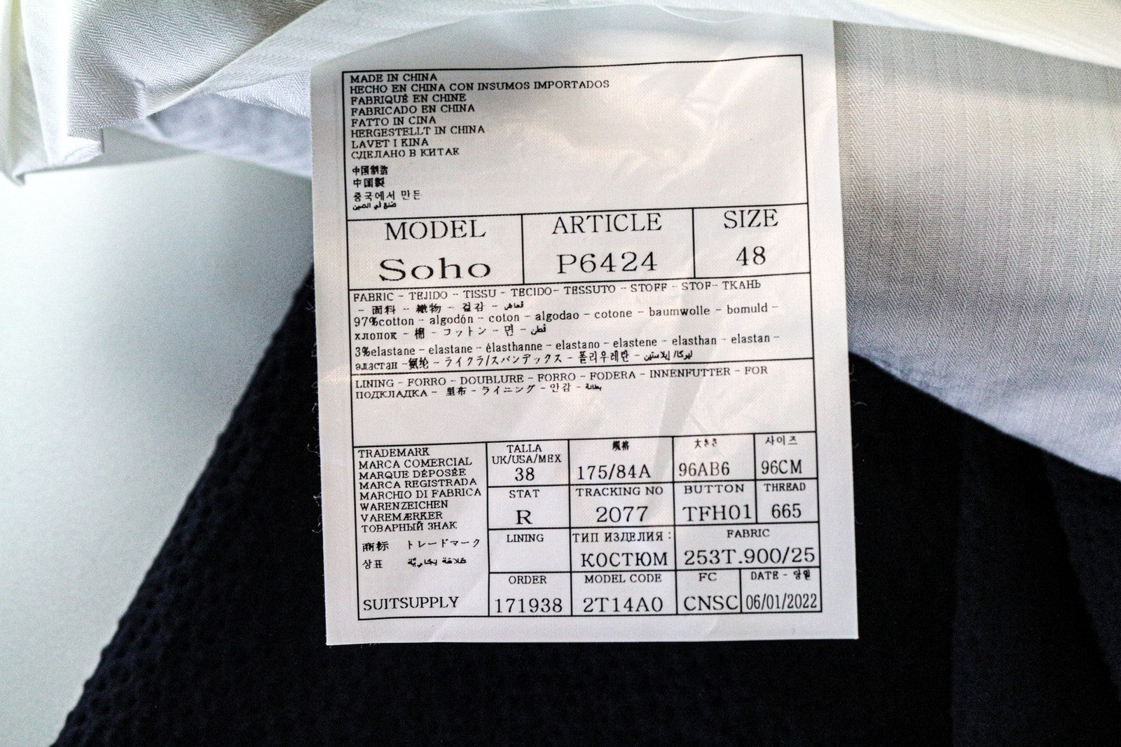 SUITSUPPLY Havana Men's Suit UK38R Blue Slim 2Pc Cotton Stretch Crinkle Unlined