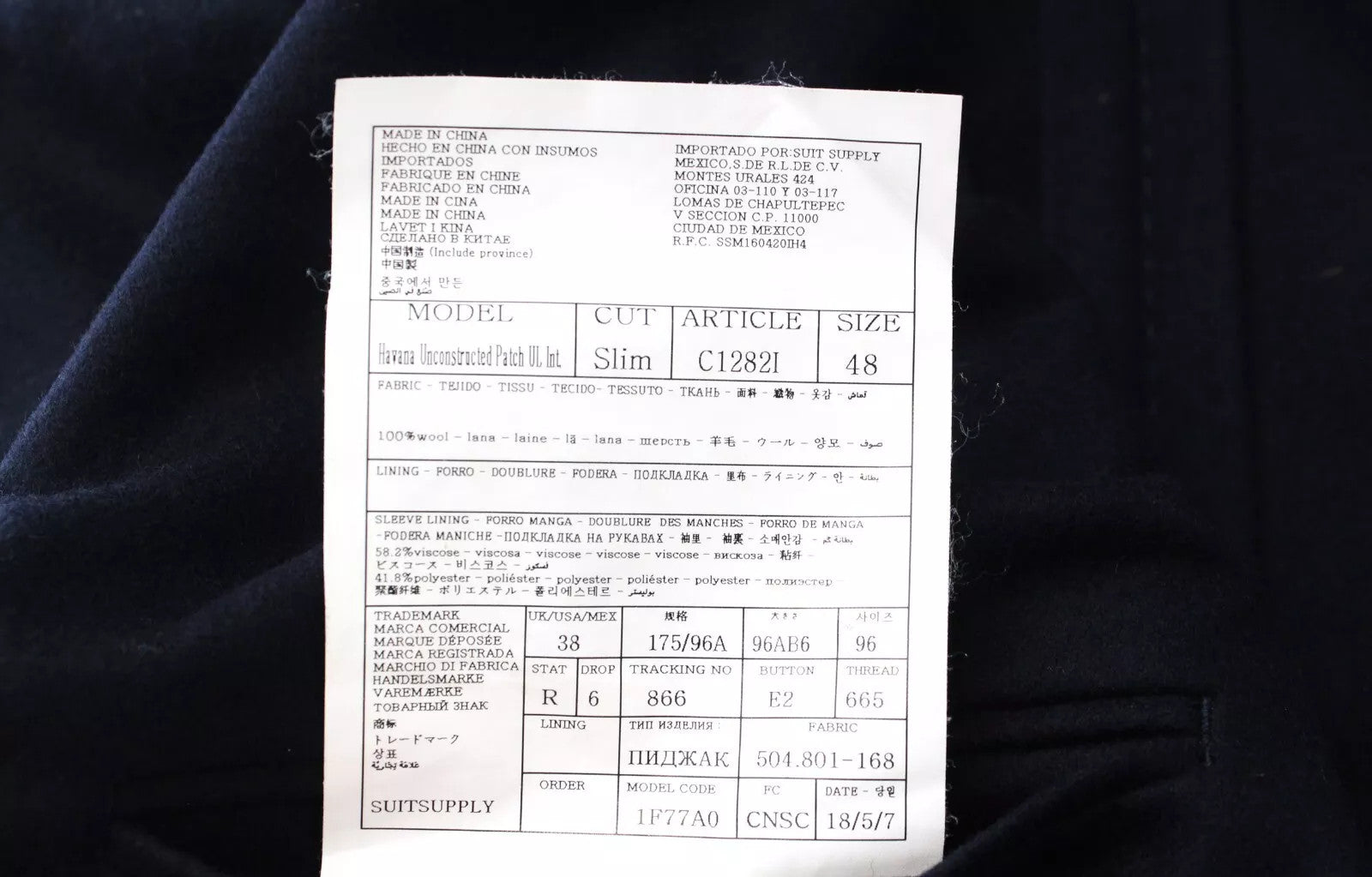 SUITSUPPLY Havana Men's Suit UK38R Navy Slim Wool 2-Piece Single-Breasted
