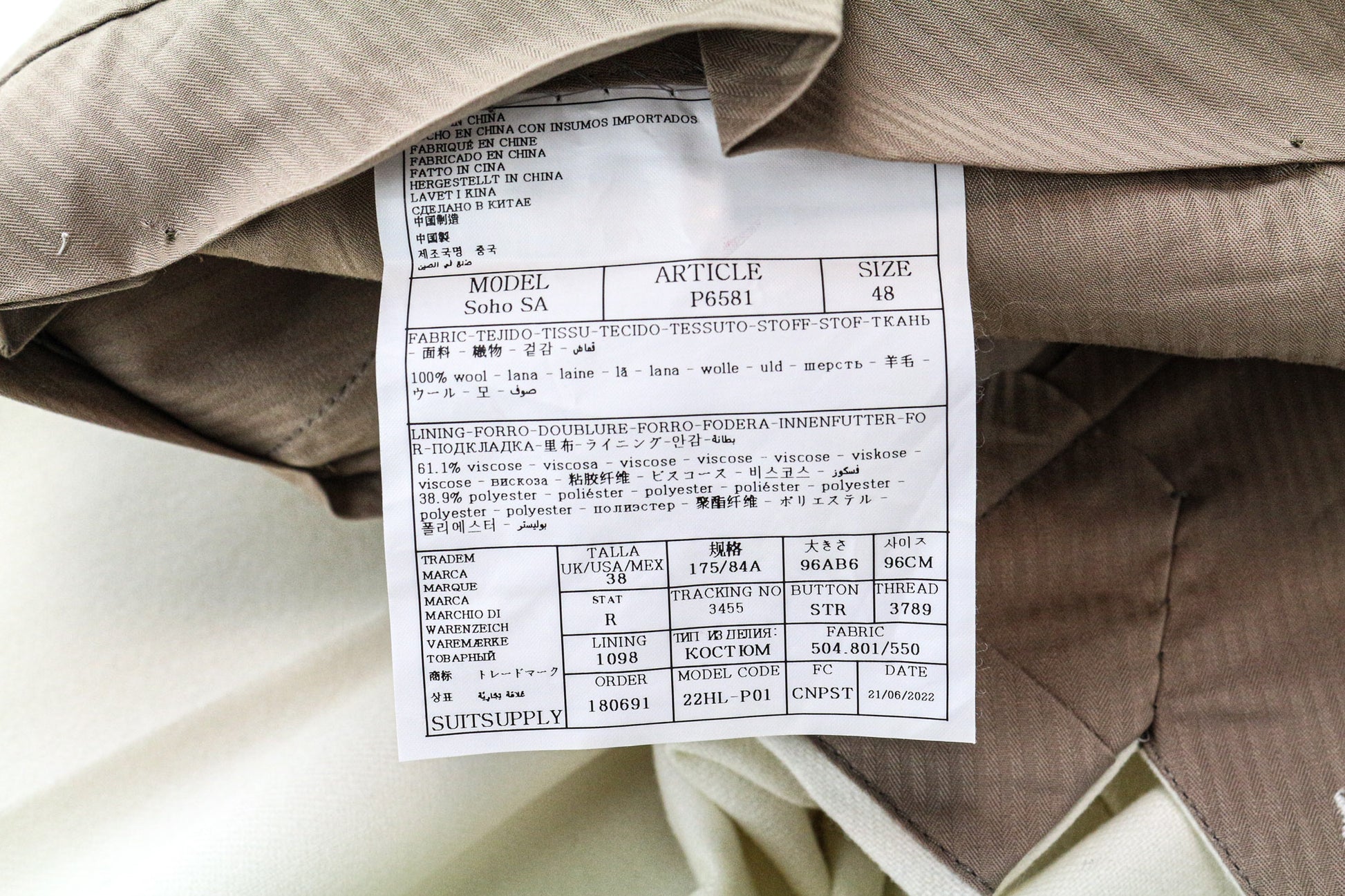 SUITSUPPLY Havana Men's Suit UK38R Slim Off-White Wool Flannel 2-Piece Jetted