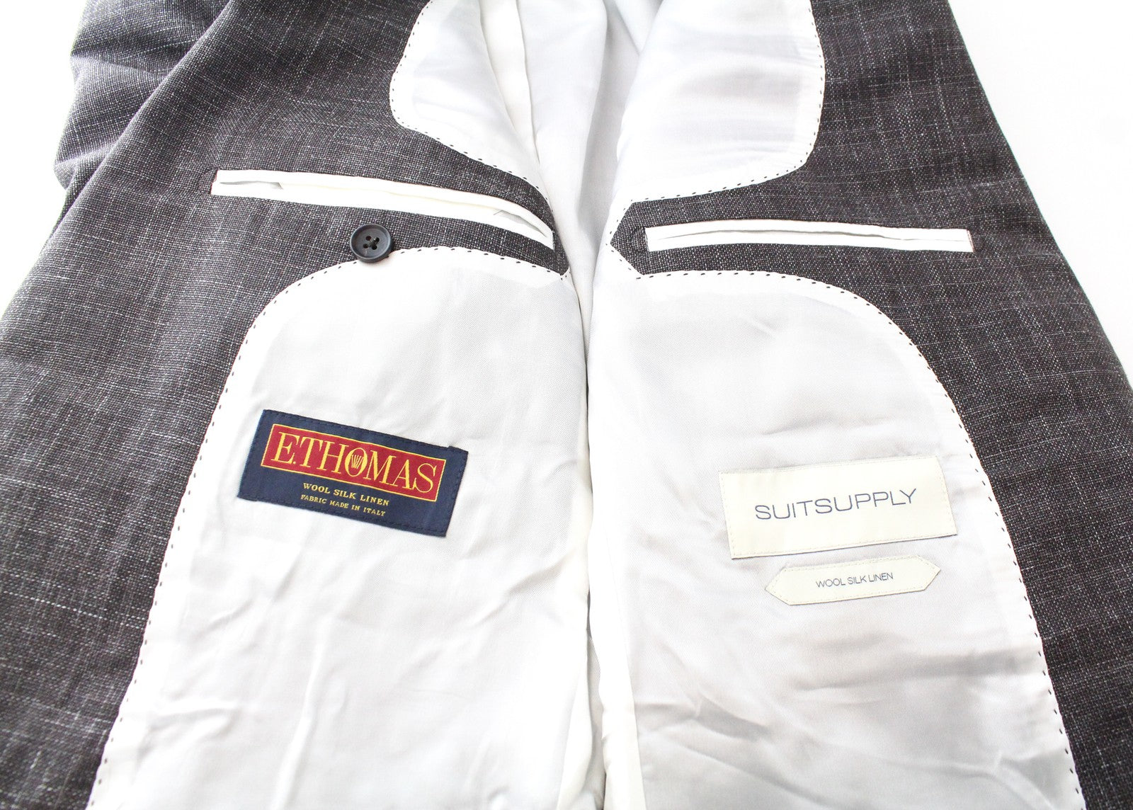 SUITSUPPLY vyriškas kostiumas „Havana“, UK38R, plonas vilnos ir šilko melanžo spalvos, 3 dalių, rudos spalvos mišinio audinys