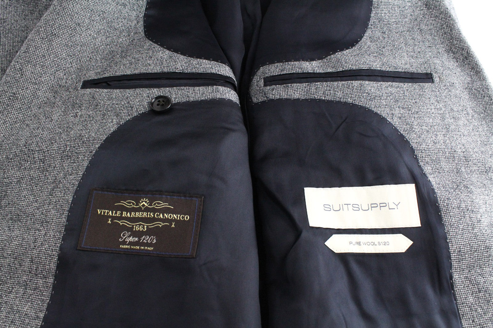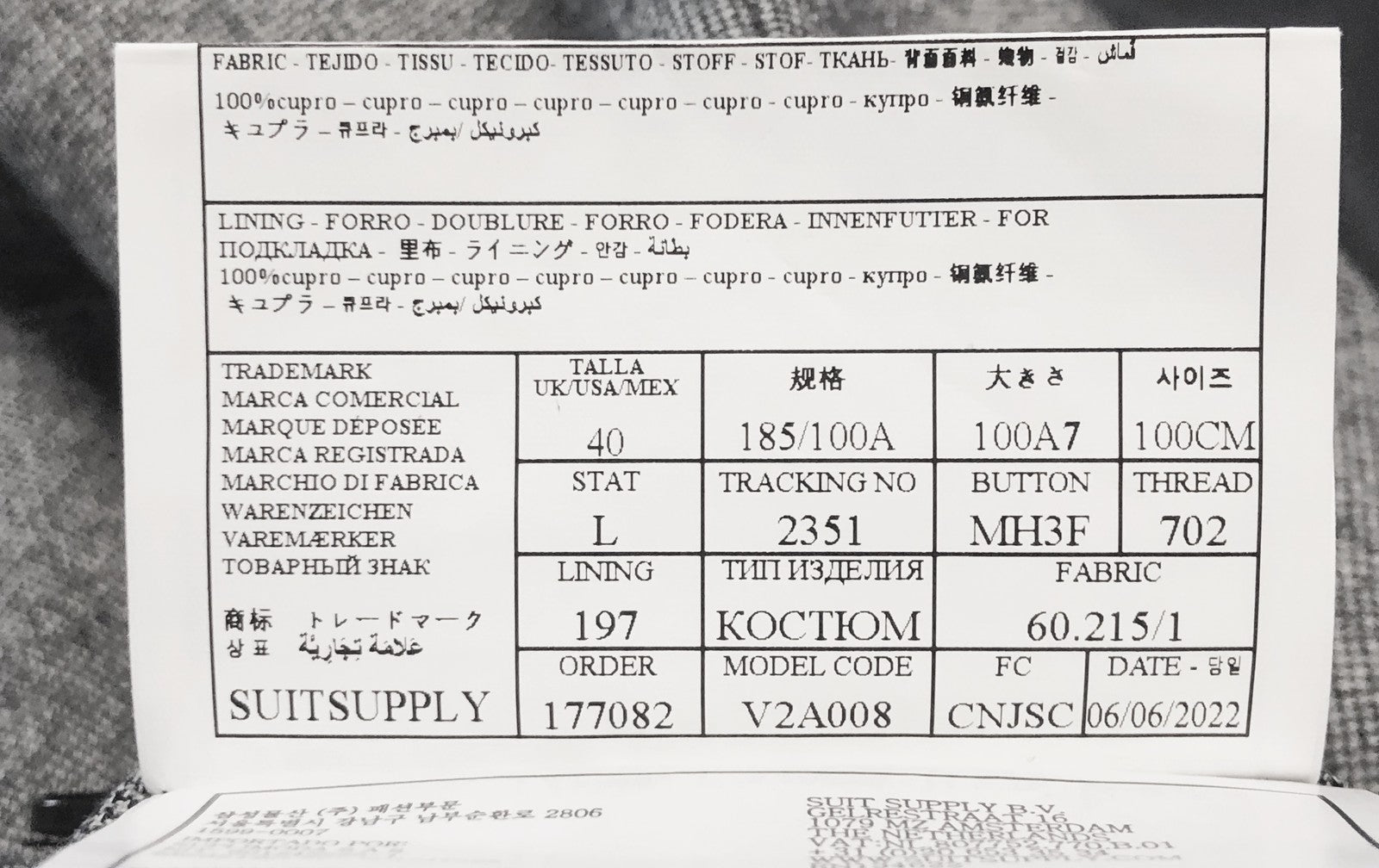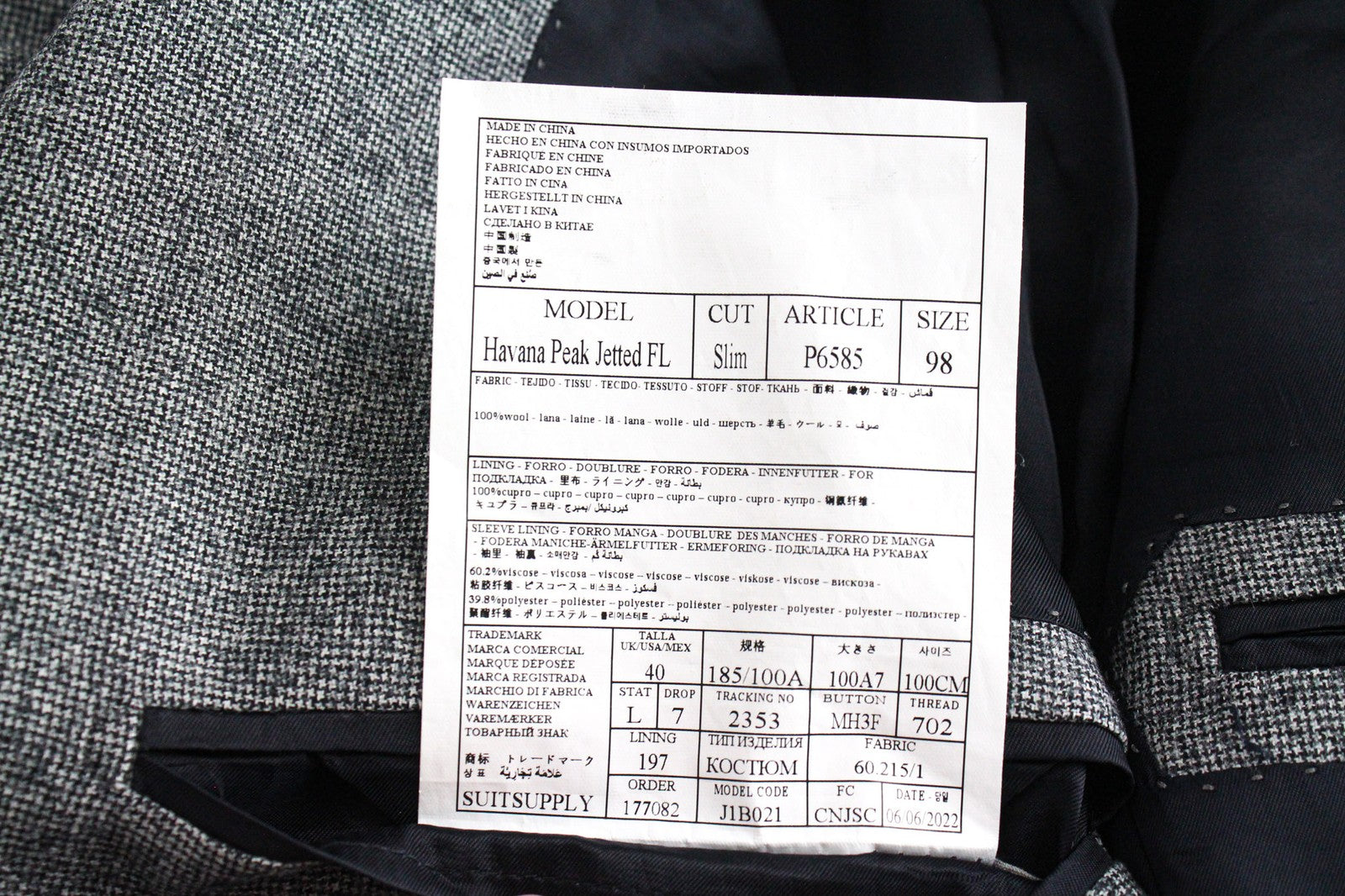 SUITSUPPLY Havana Men's Suit UK40L Grey Houndstooth 2Pc Slim S120 Wool Peak