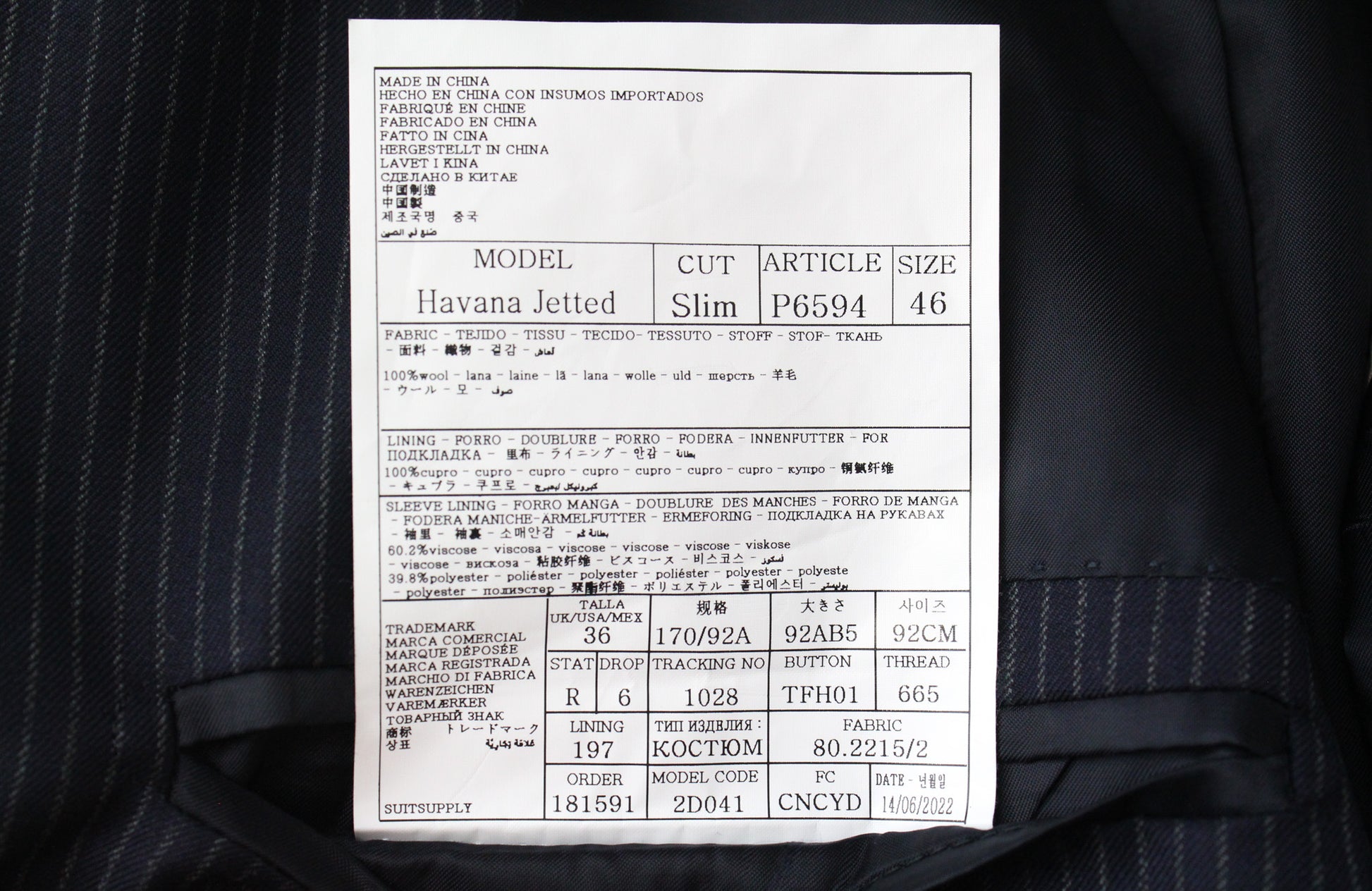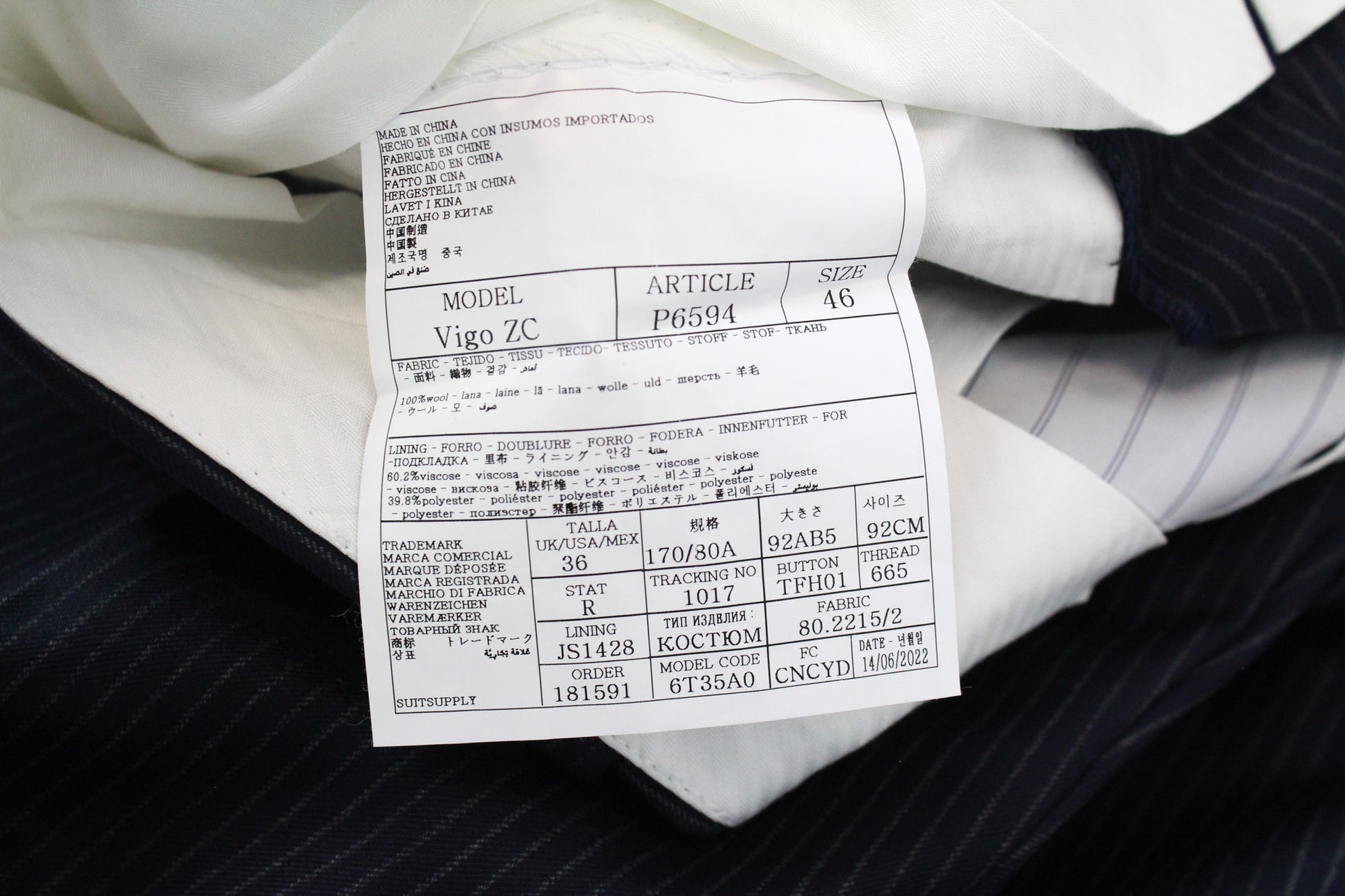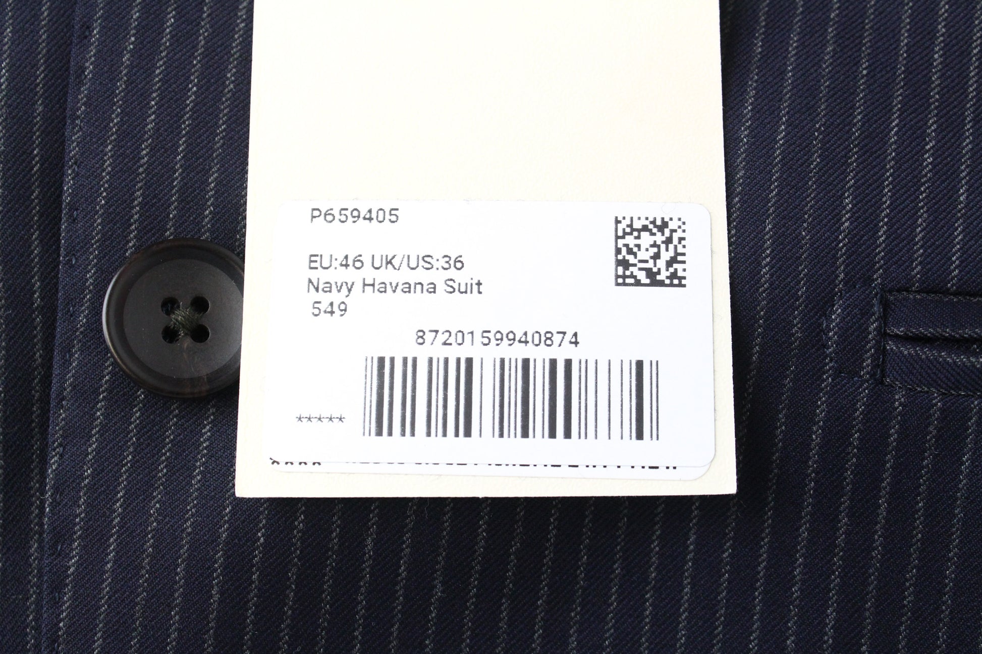 SUITSUPPLY Havana Men's UK36R Navy Stripe 2Pc Suit Slim Super 130's Wool