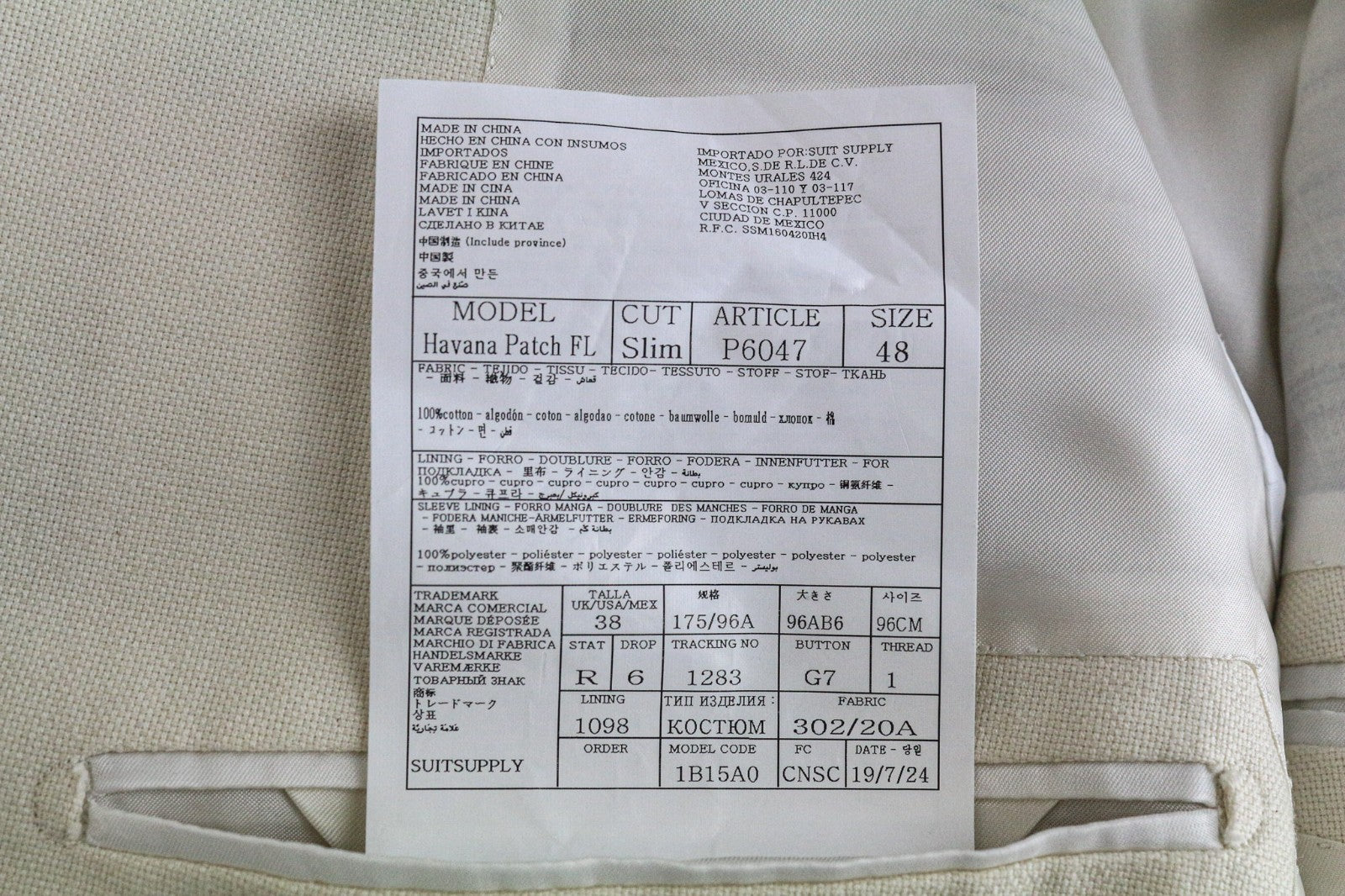 SUITSUPPLY Havana Men's UK38R Off-White Slim Fit Pure Cotton Dress 2 Piece Set