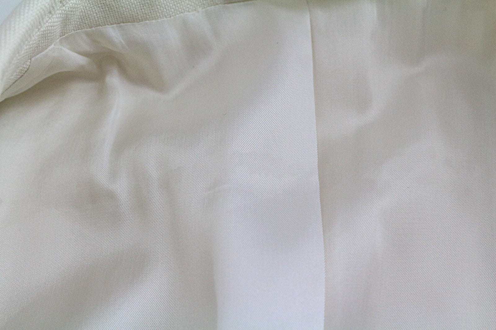 Būklė: Used. Stains on the blazer's front, lining and back. Stains on the right leg and lining. Please see added photos.