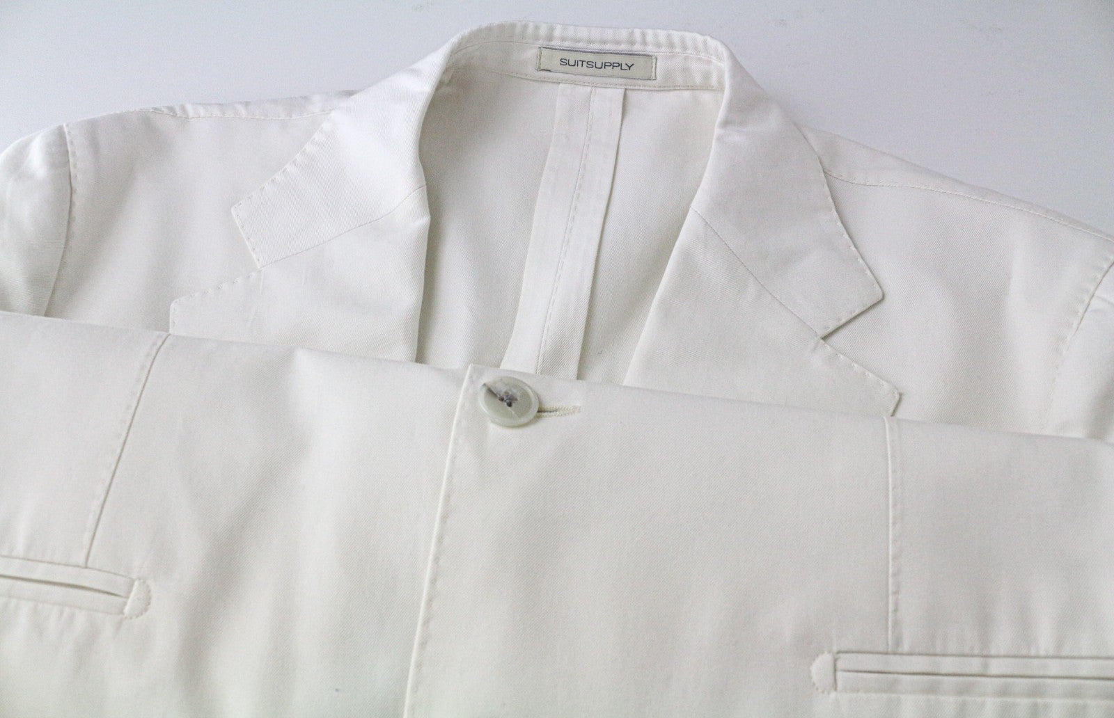 SUITSUPPLY Havana Men's UK42S Off-White Slim Cotton Pleated 2 Piece Classic Suit