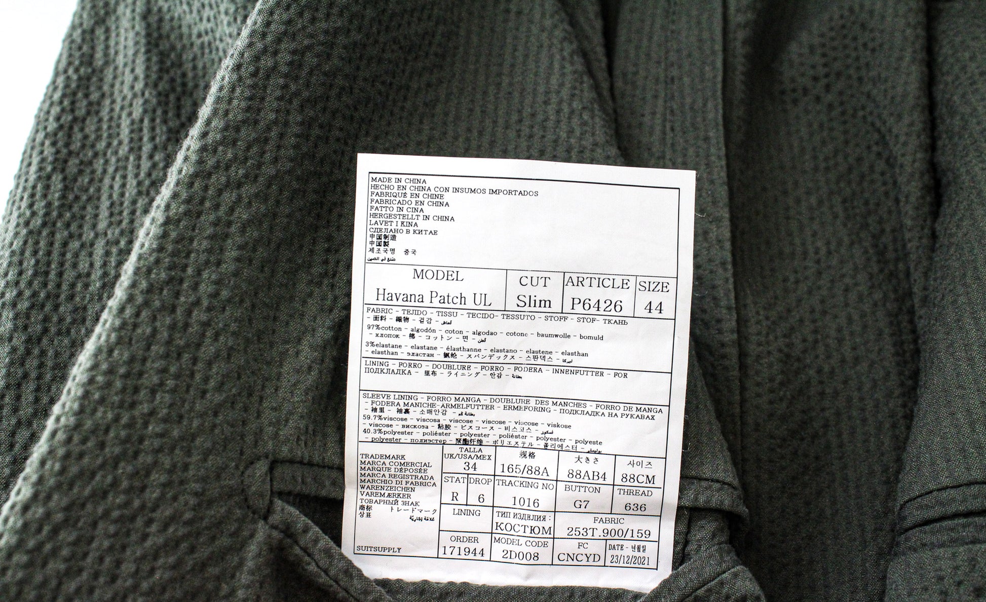 SUITSUPPLY Havana Patch Men's Suit UK34R Green Slim 2-Piece Cotton Mix Stretch