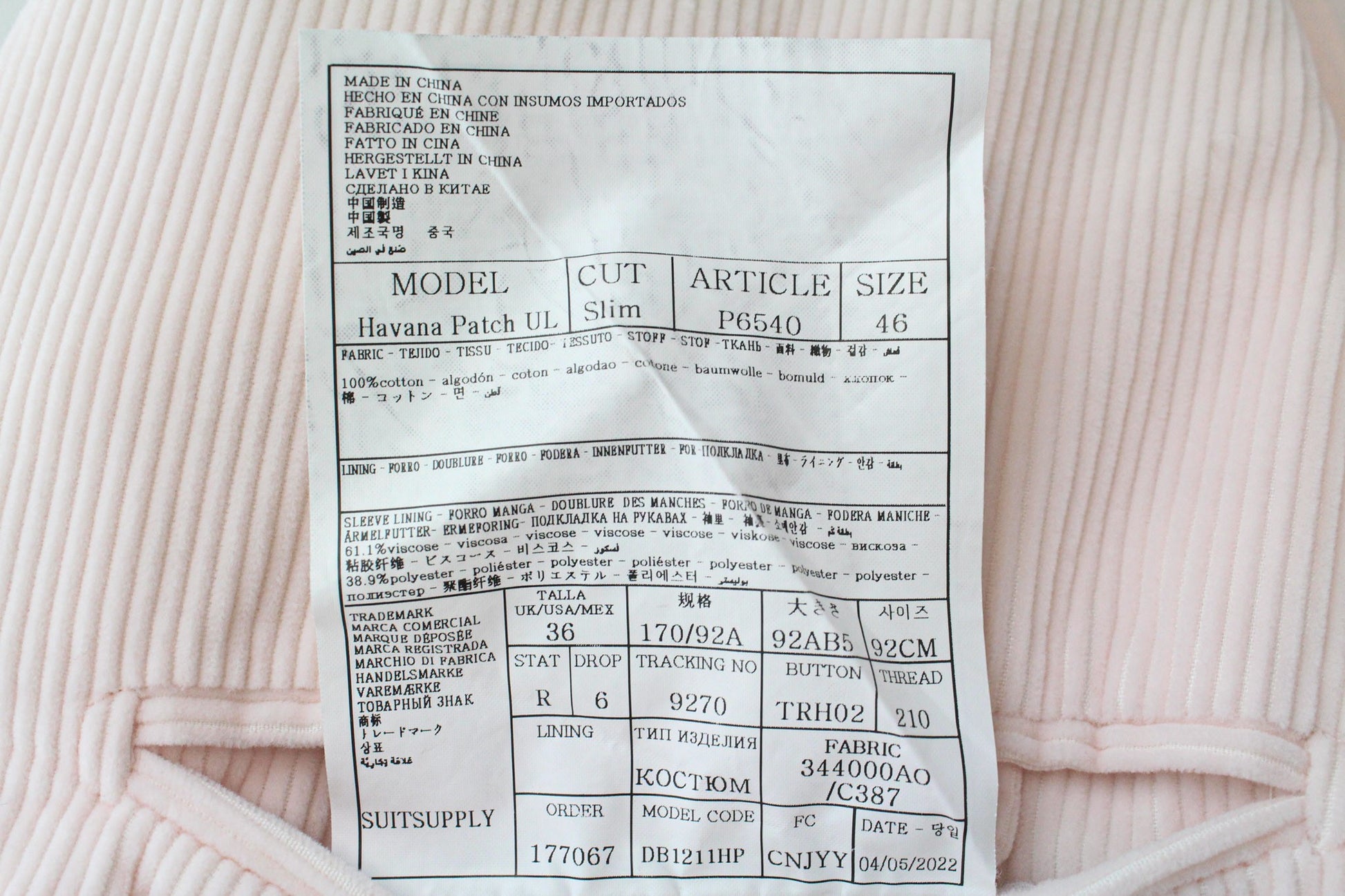 SUITSUPPLY Havana Patch Men's Suit UK36R Pink Slim Cotton Velvet Cord 2-Piece