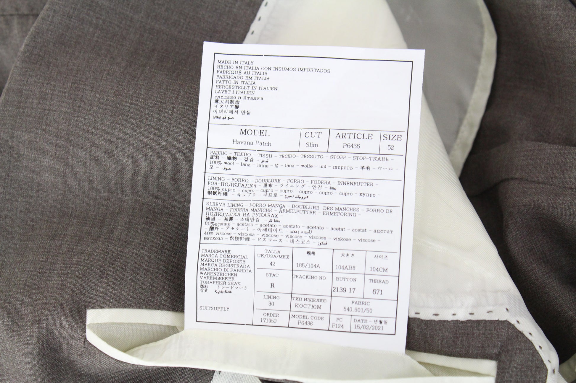 SUITSUPPLY Havana Patch Men's Suit UK42R Super 120's Brown Wool Slim Cut