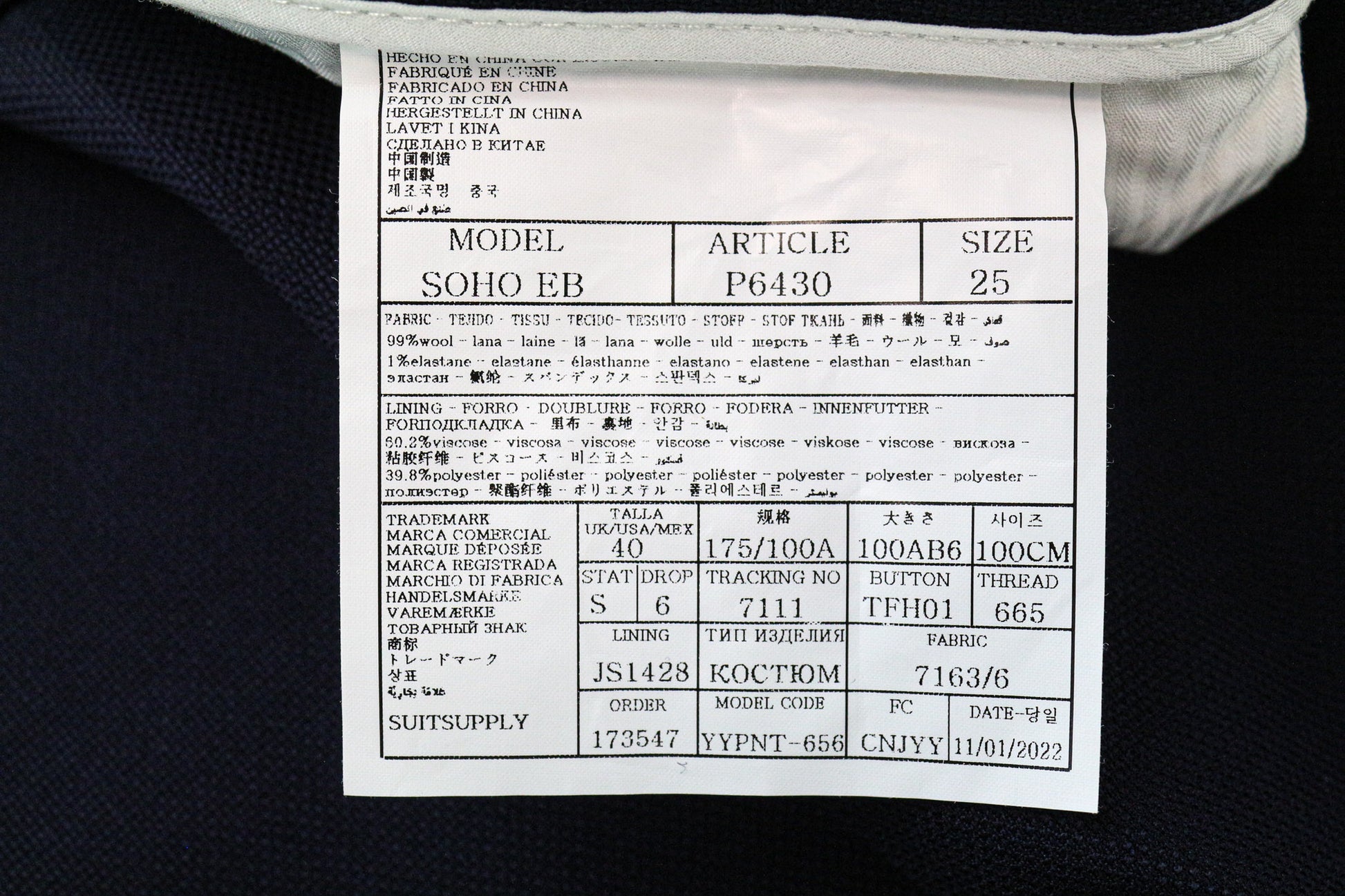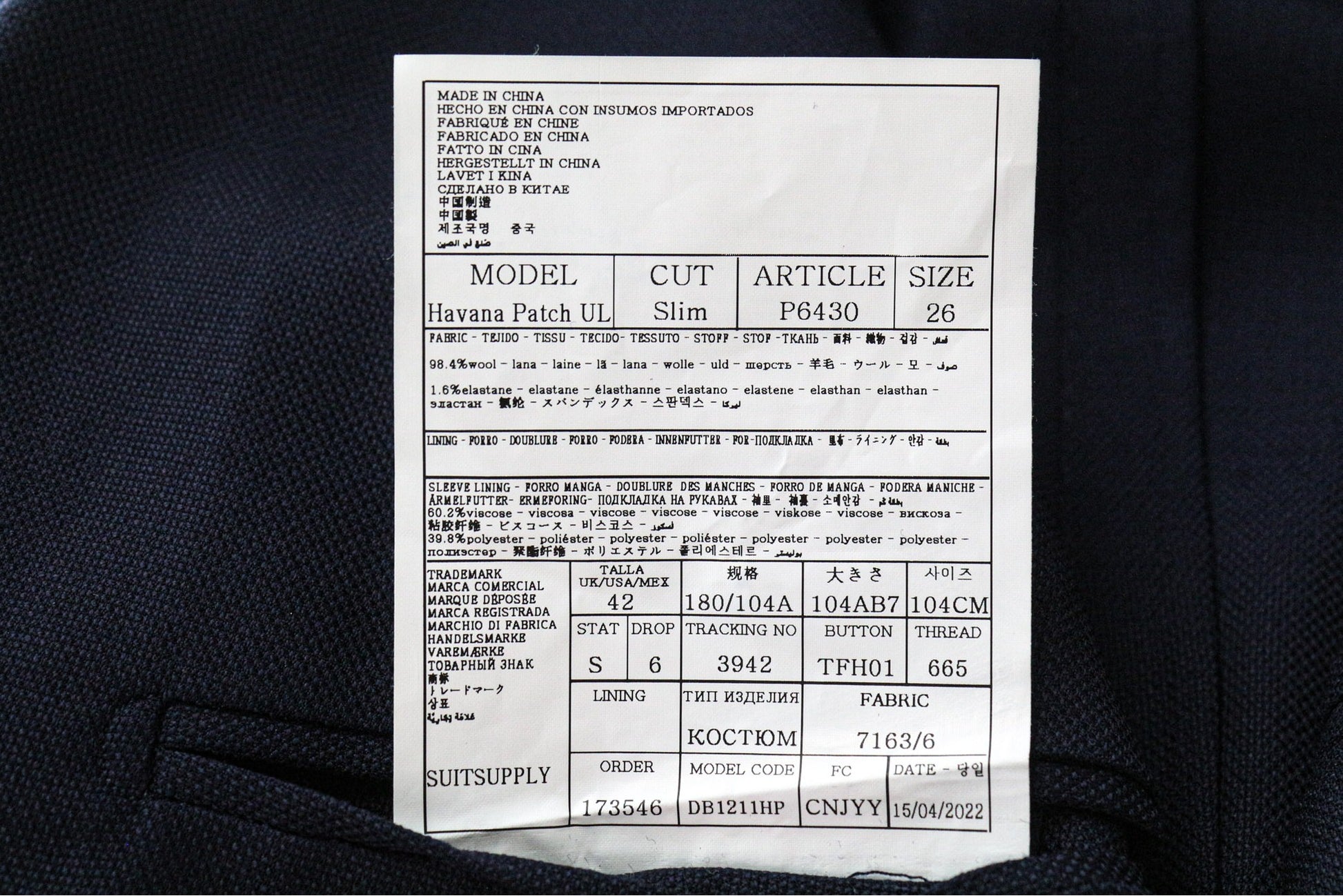 SUITSUPPLY Havana Patch Men's Suit UK42S Slim Navy Blue 2Pc Wool Mix Stretch