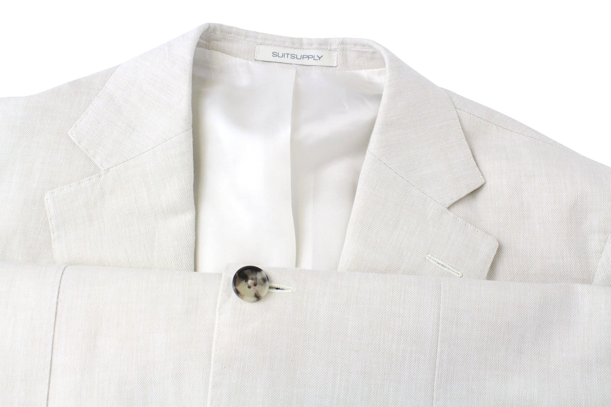 SUITSUPPLY Havana Suit UK38R Beige Melange 3-Piece Linen Cotton Slim Fit Men
