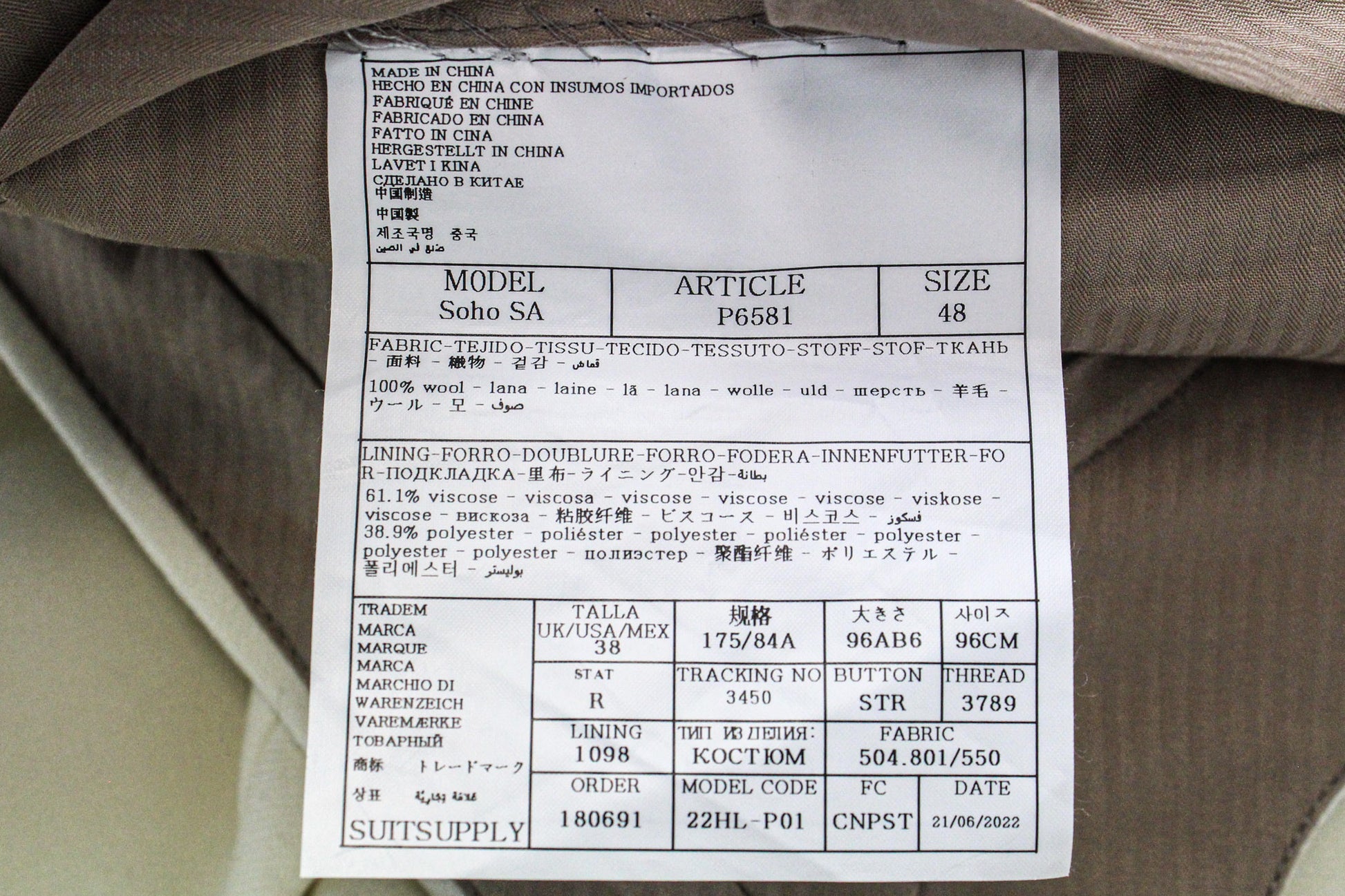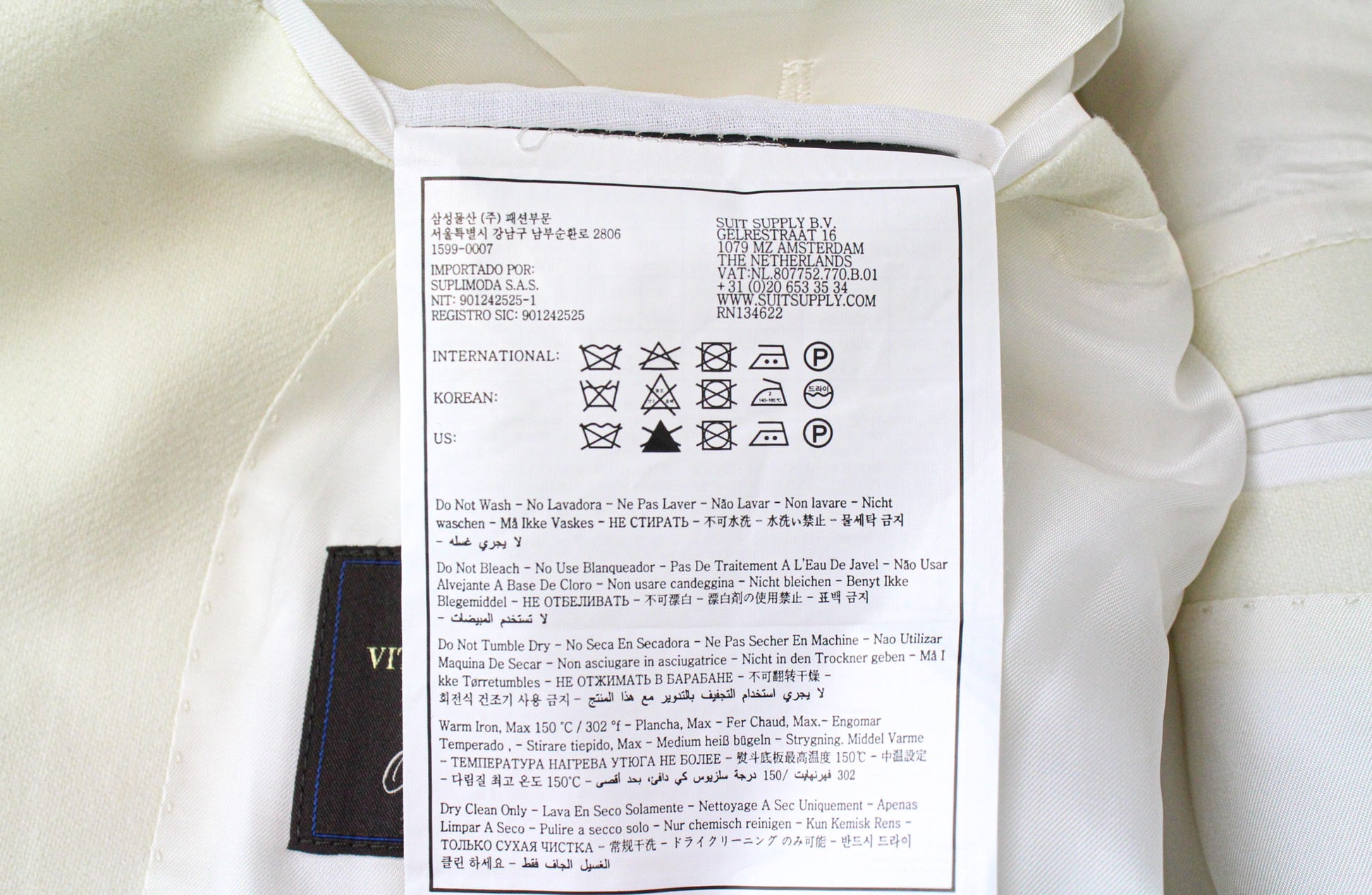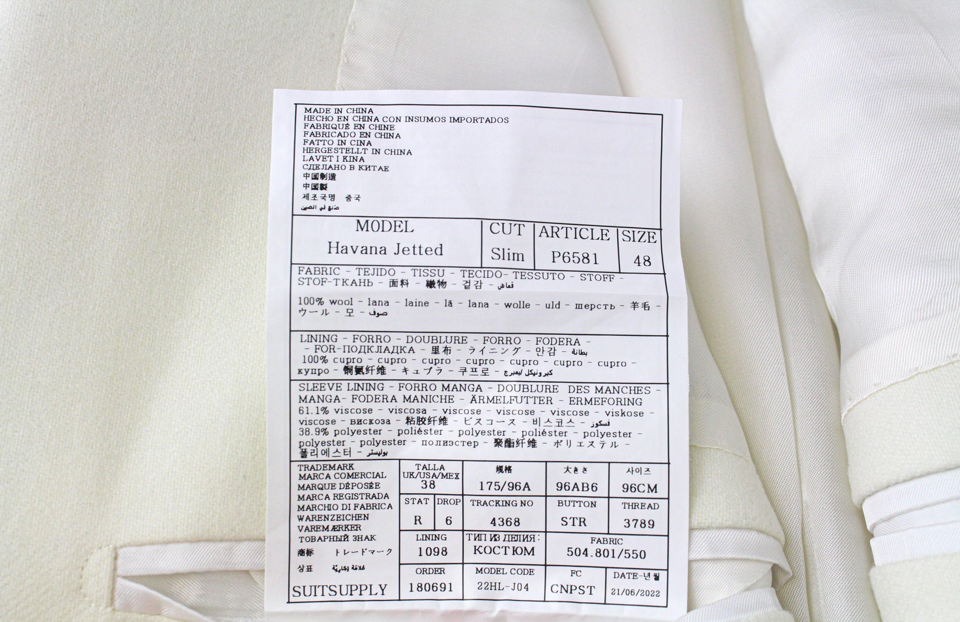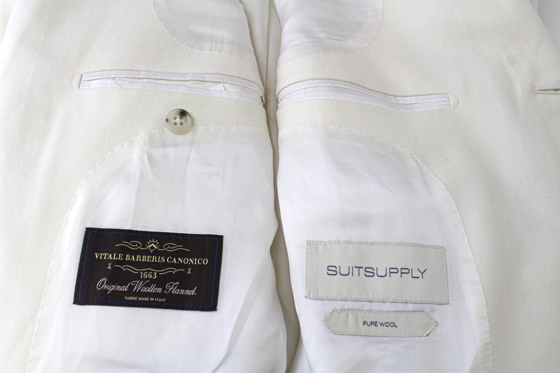 SUITSUPPLY Havana Suit UK38R Men's Off-White Wool Flannel 2-Piece Slim