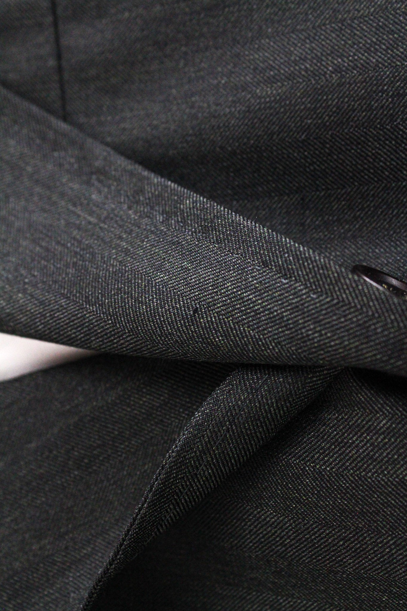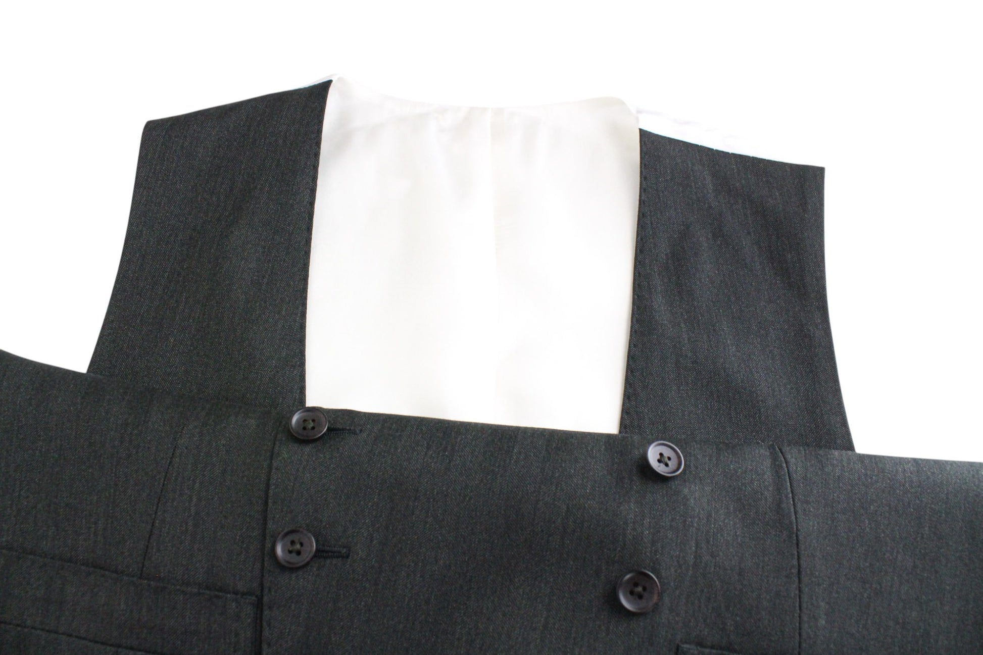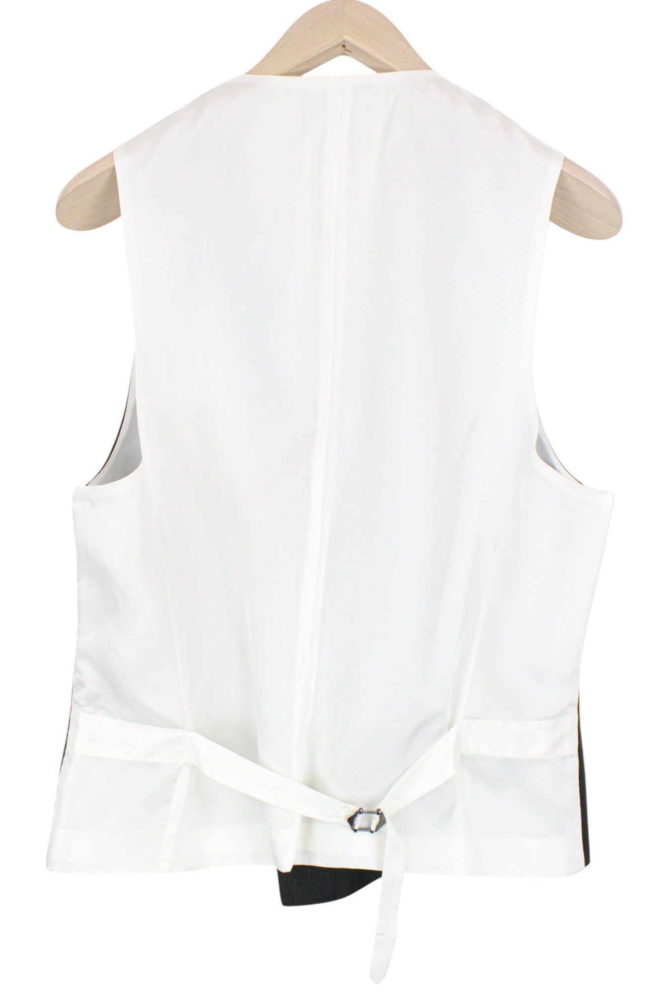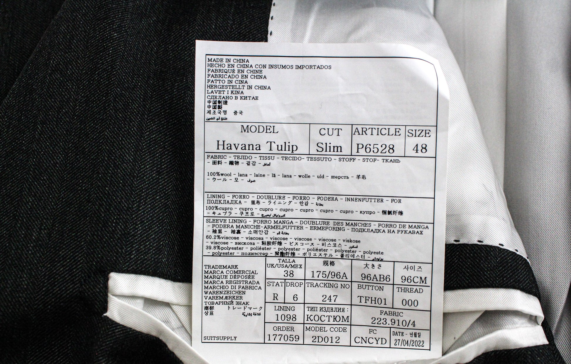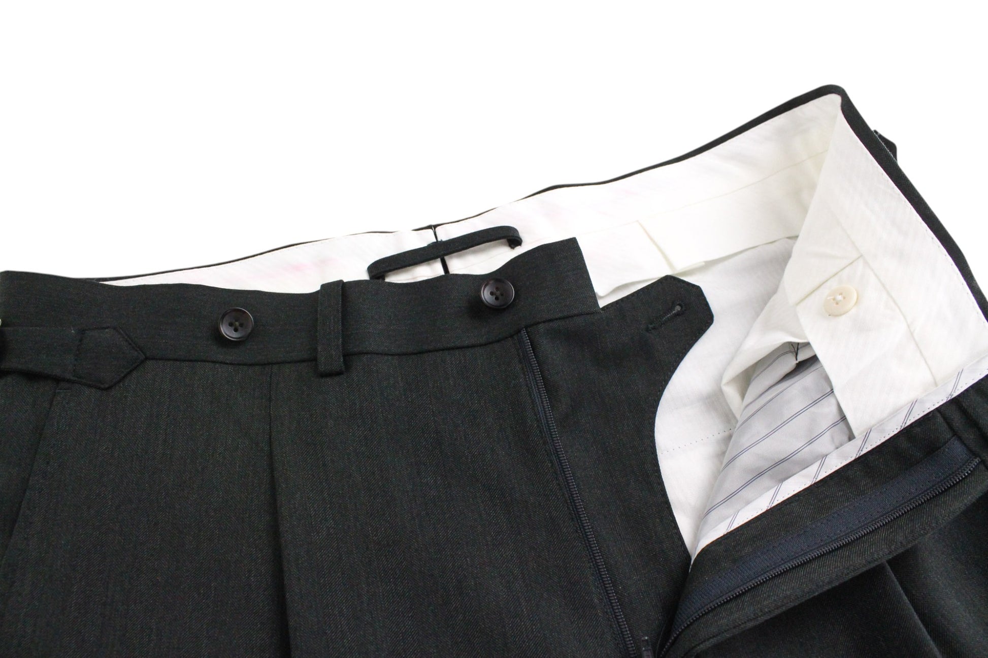 Used. Stained waistline on the inside. Pulled threads on the lapel and right leg at the back. Please see added photos.