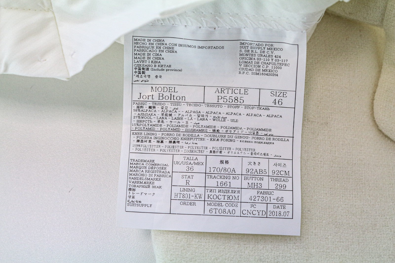 SUITSUPPLY Jort Men's UK38R Off-White Alpaca Wool Suit 2-Piece Slim Half-Lined